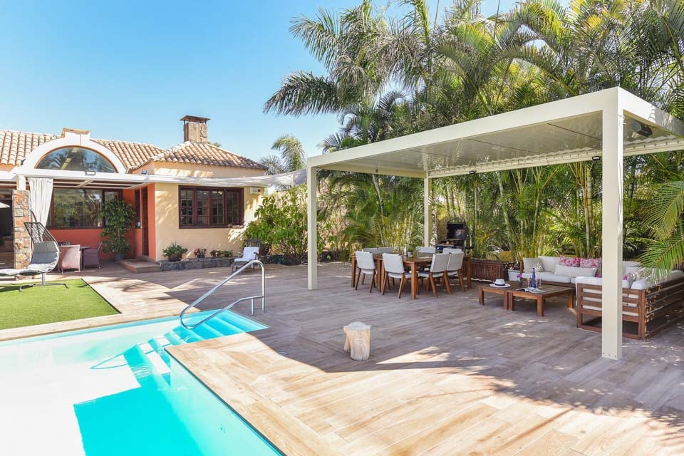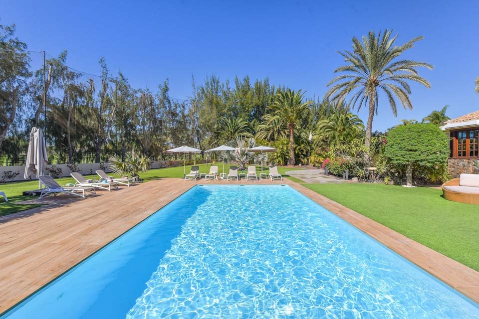 Villa Princesa Royal er et must-see! Beliggende lige midt på Maspalomas' 18-hullers golfbane, er det et paradis for golfspillere. Spil et par spil med venner eller familie, inden I vender tilbage til villaen til en fest under åben himmel. Vi elskede terrassen med den store opvarmede* pool i centrum og flere chill-out-steder at vælge imellem. Du kan læne dig tilbage, slappe af og nyde stilen, mens du nyder solskinnet og et par glas af den lokale drink, hjemmelavede cocktails eller frisk frugtjuice.