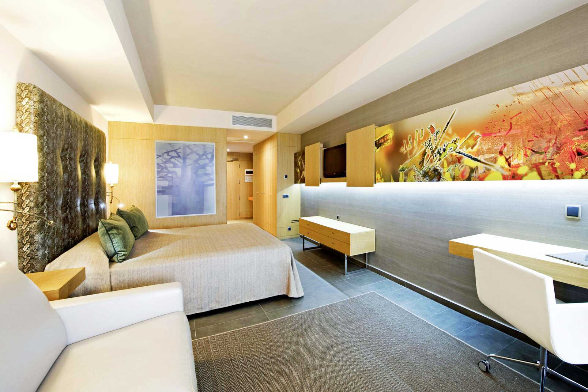 Superior-værelse med balkon. En dobbeltseng. Mulighed for ekstra opredning i sovesofa. Gratis wifi, aircondition og deponering. Minibar. El-kedel. Nespresso kaffemaskine. Tv med internationale kanaler. Badeværelse med bruser og badekar og toilet. Rengøring 7 gange om ugen. Børn under to år tæller med i det maksimale antal personer på værelset.