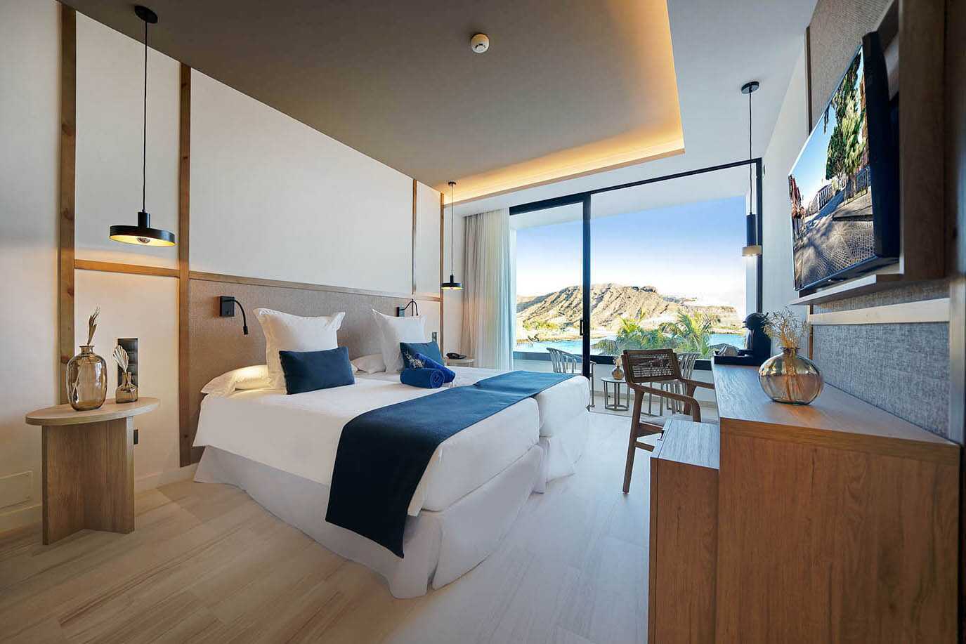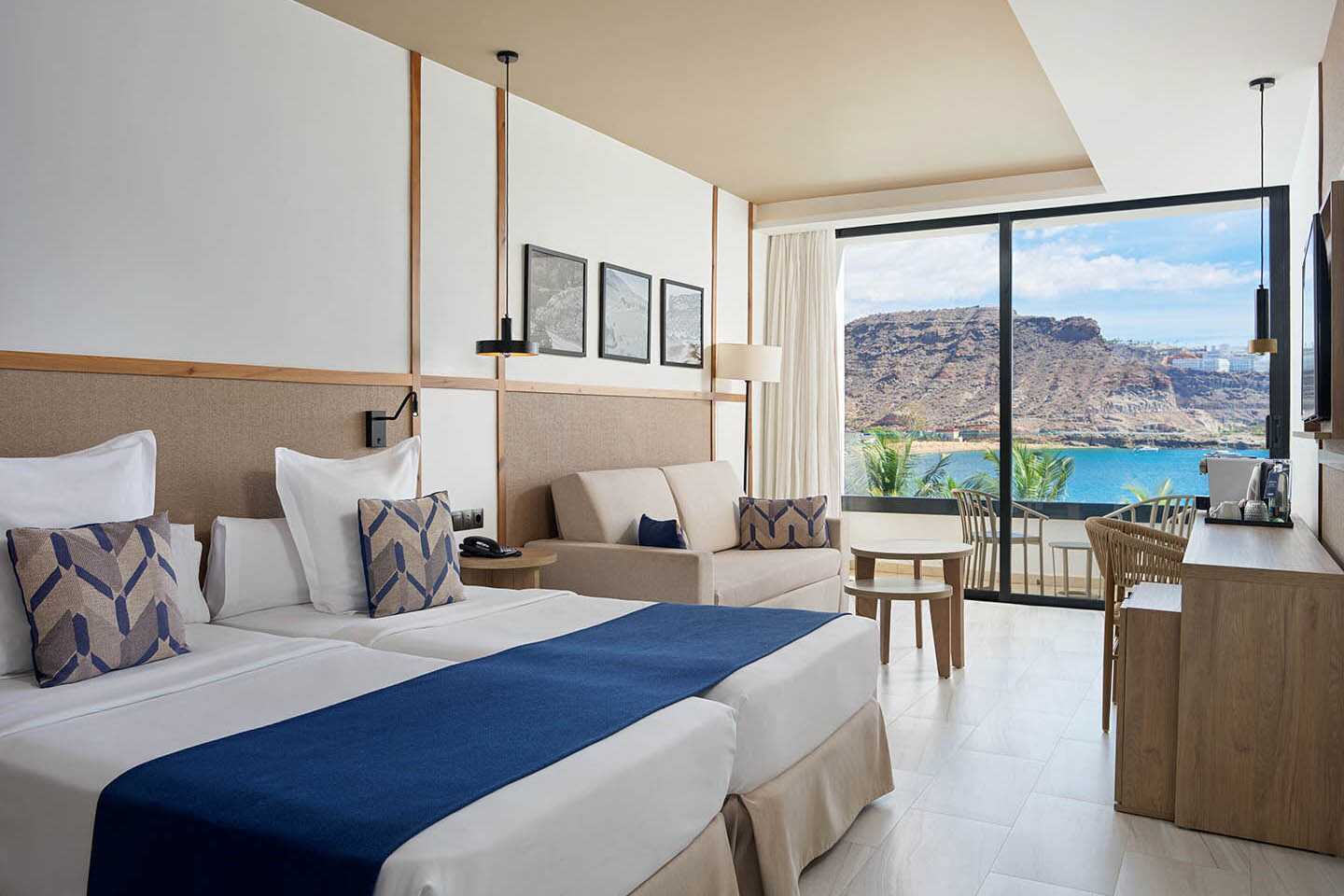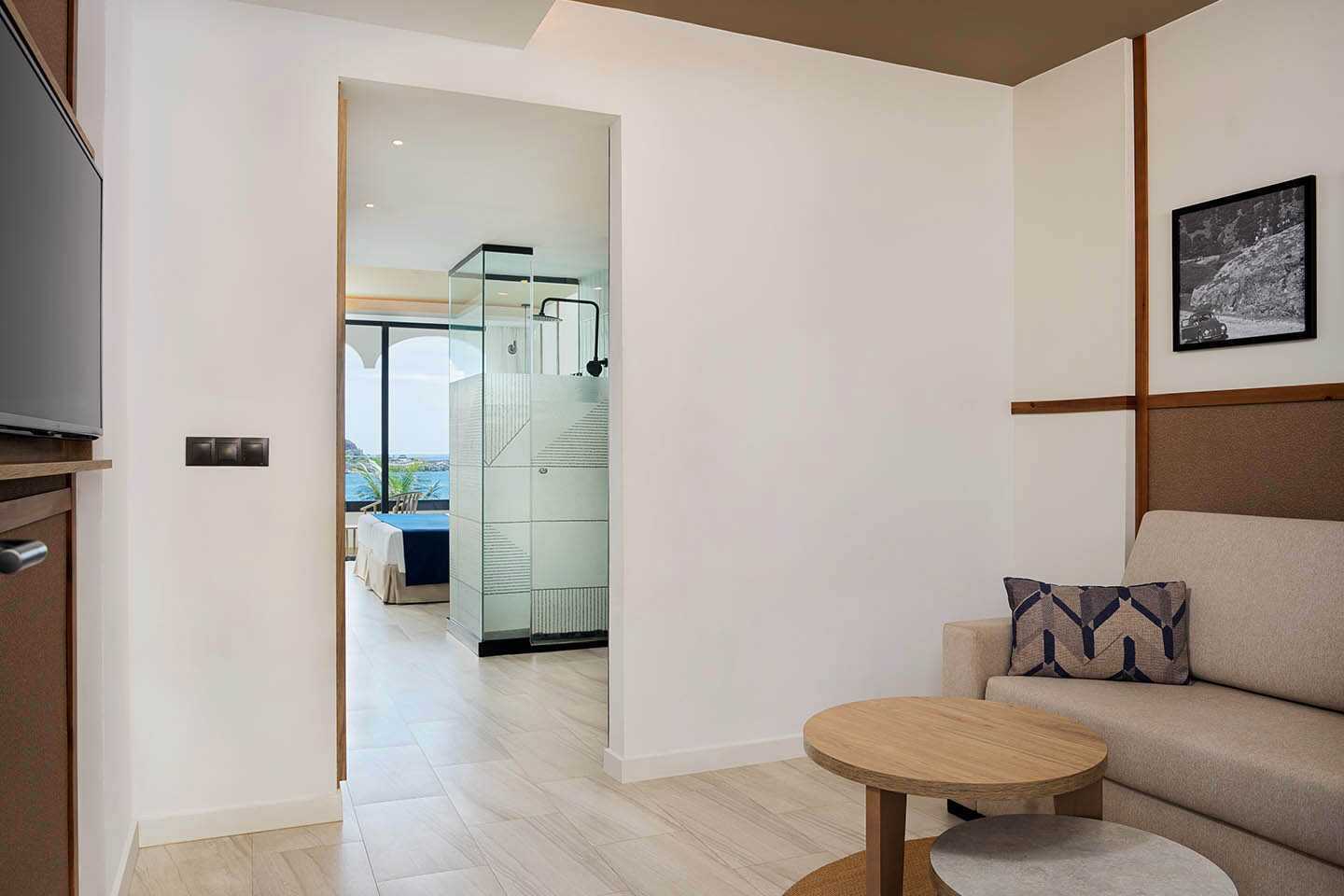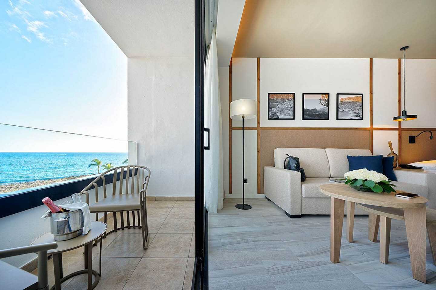 Junior-suite superior med stor balkon eller terrasse og havudsigt. Junior-suiten består af et soveværelse og et opholdsområde i åbent planløsning. To enkeltsenge. Gratis wifi, aircondition og deponering. Lille køleskab. Nespresso-maskine, kapsler mod betaling. El-kedel og kaffe/te. Et tv med internationale kanaler på hvert værelse. Hårtørrer. Badeværelse med bruser og toilet. Rengøring 7 gange om ugen.