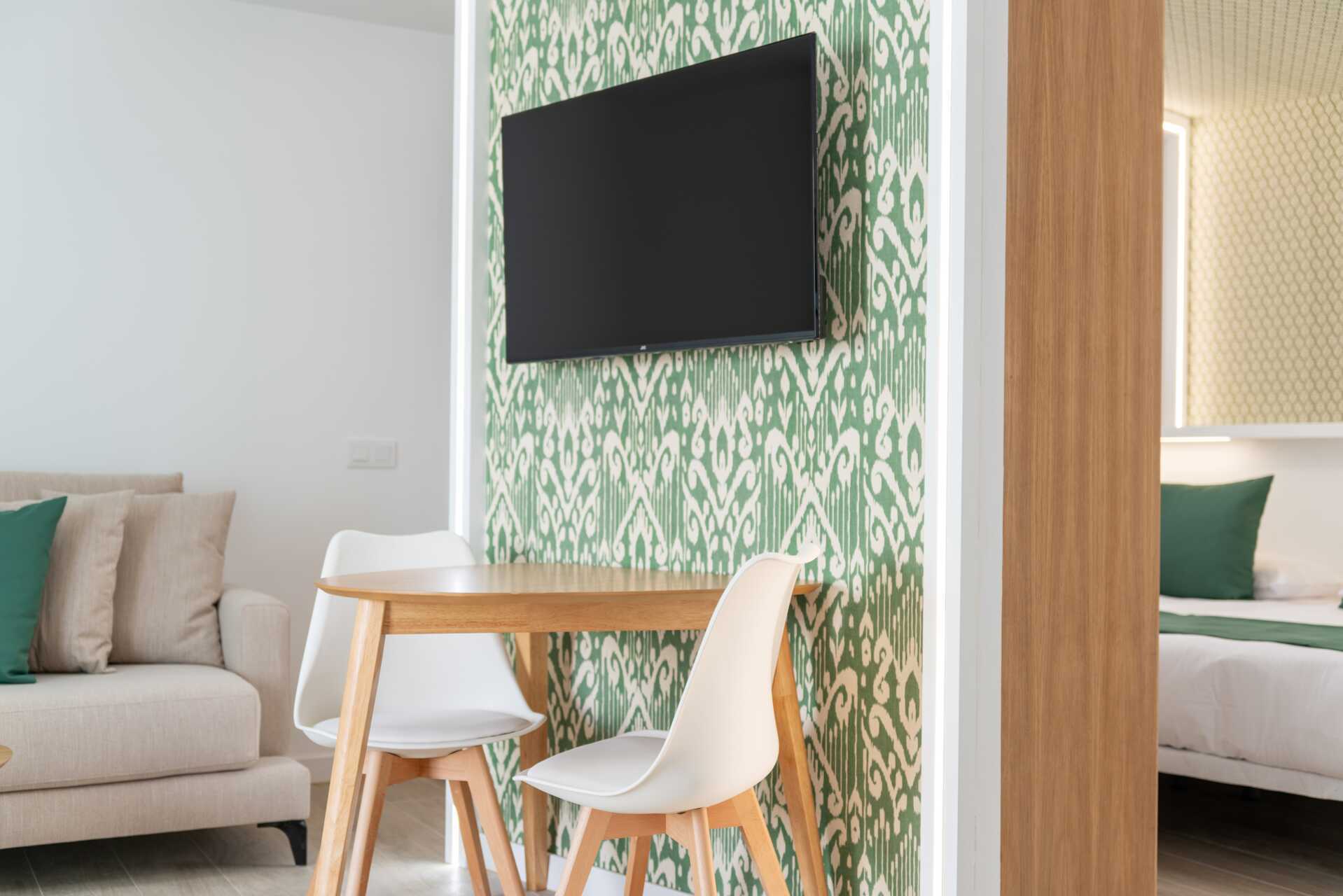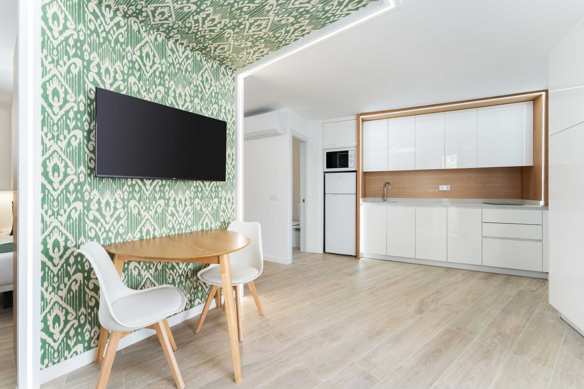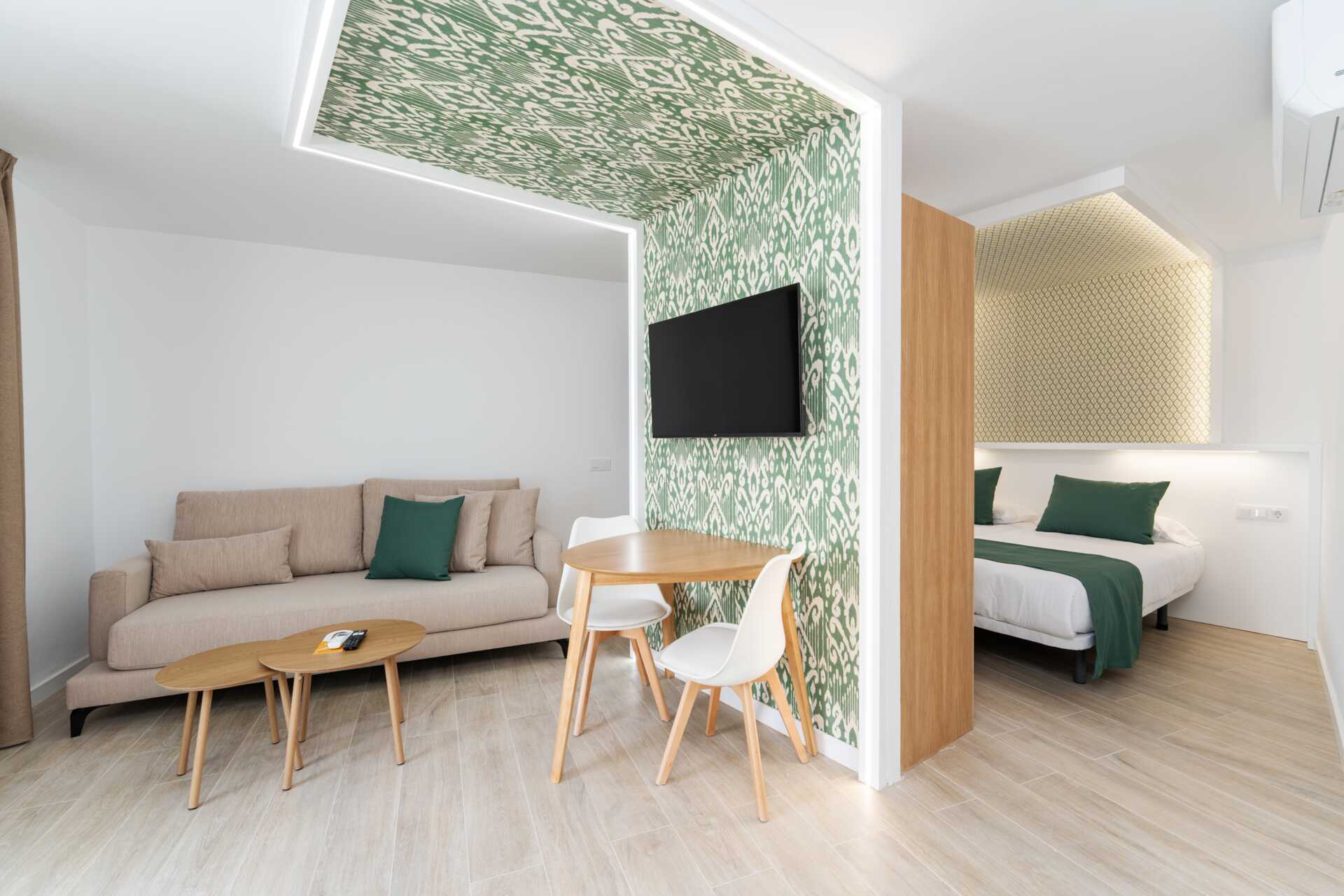 1-værelses lejligheder med balkon eller terrasse og pooludsigt. Soveværelse med kombineret opholdsrum og minikøkken. To enkeltsenge og en sofa. Minikøkken med kogeplader, køleskab, kaffemaskine, el-kedel, mikrobølgeovn og enkelt køkkenudstyr. Gratis wifi. Deponering mod betaling. Tv. Hårtørrer. Badeværelse med bruser og toilet. Rengøring 4 gange om ugen.