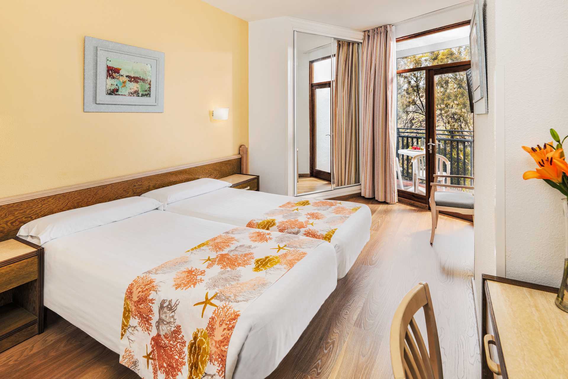 Dobbeltværelser med balkon eller terrasse, nogle med havudsigt. En dobbeltseng eller to enkeltsenge. Gratis wifi. Aircondition mod betaling. Tv med internationale kanaler. Hårtørrere kan lånes mod depositum. Badeværelse med badekar og toilet. Rengøring 7 gange om ugen.