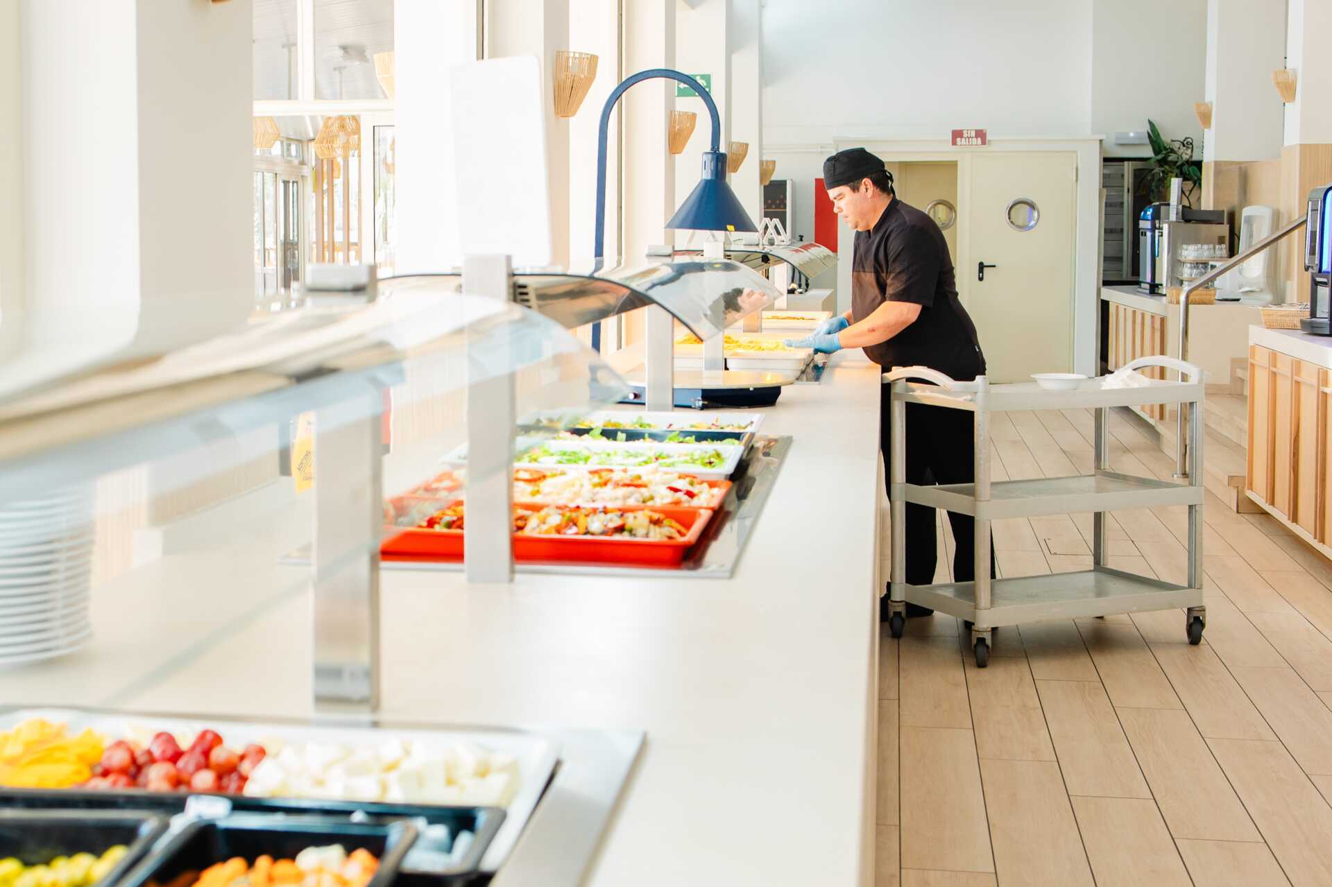 En buffetrestaurant som serverer morgenmad, frokost og middag samt en a la carte-restaurant som er åben til middag. Bar med underholdning flere aftener om ugen.