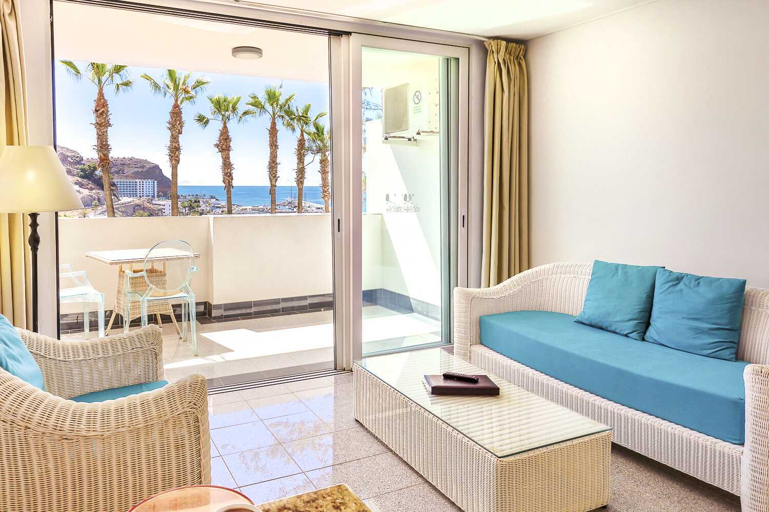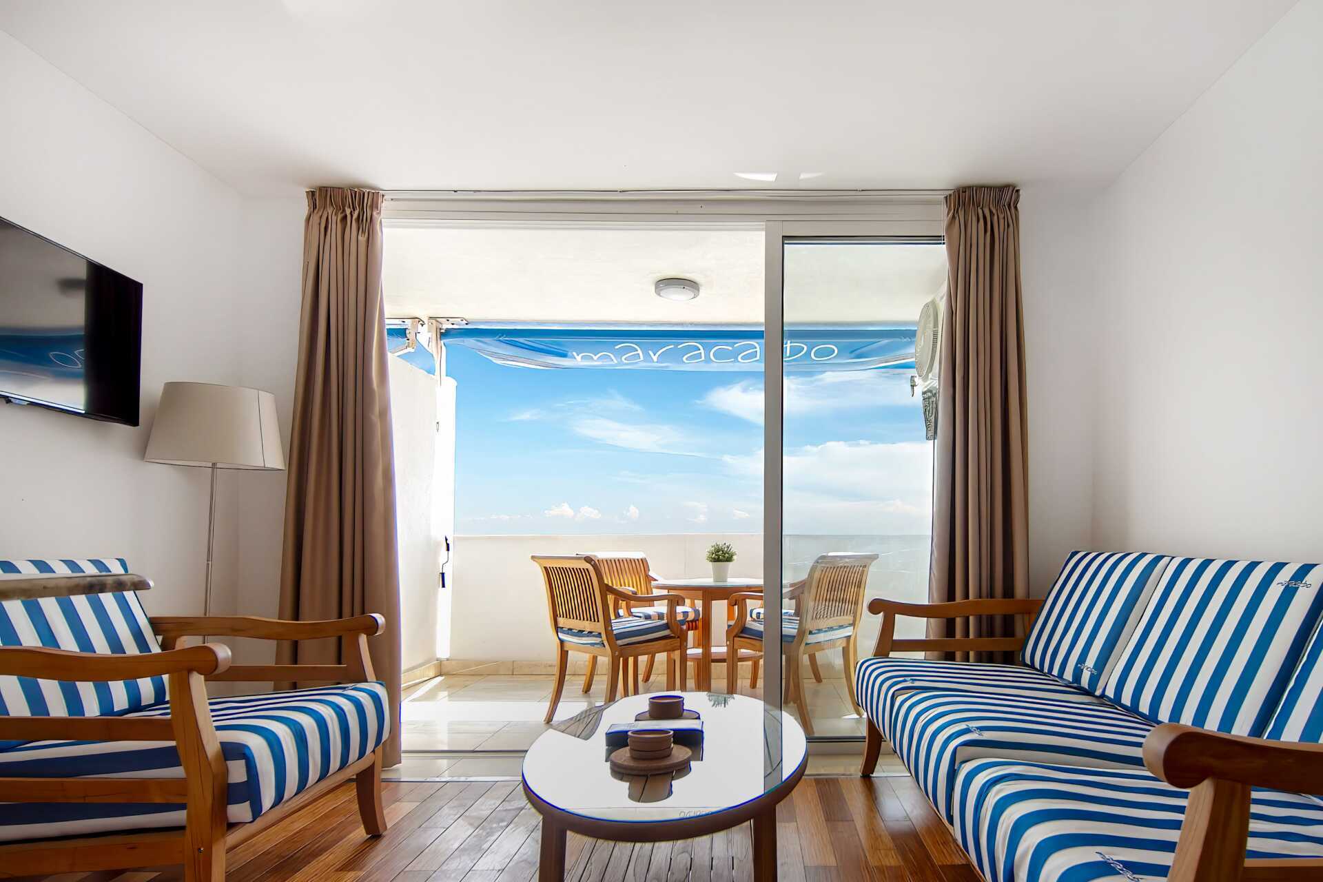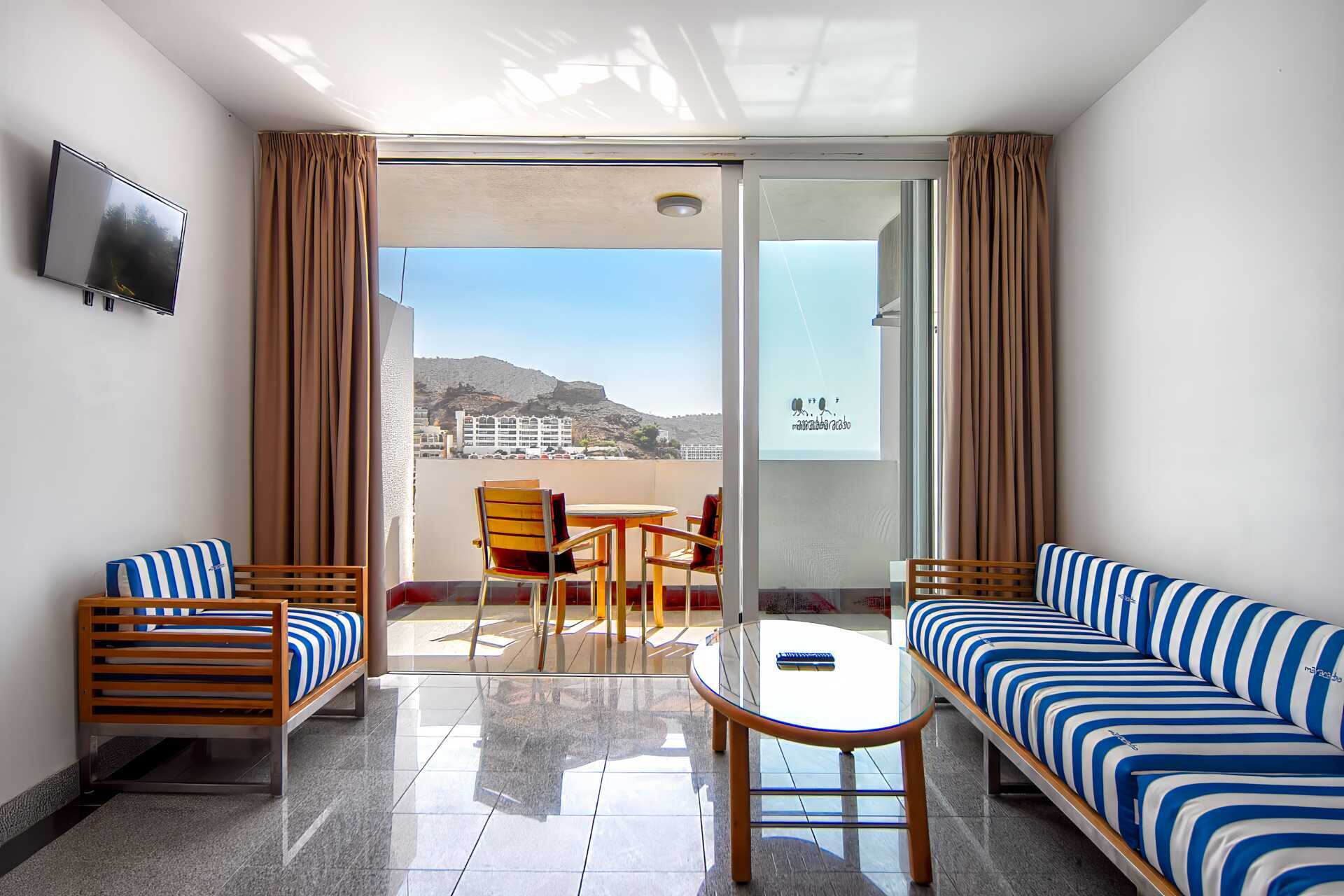 3-værelses lejlighed superior med balkon og havudsigt. Lejlighederne ligger på anden, tredje eller fjerde sal. To soveværelser og kombineret opholdsrum med minikøkken. Et soveværelse med dobbeltseng og et soveværelse med to enkeltsenge. Mulighed for ekstra opredning i sovesofa. Minikøkken med kogeplader, køleskab, kaffemaskine, el-kedel, brødrister og enkelt køkkenudstyr. Nogle lejligheder har en bardisk som spiseplads. Gratis wifi og aircondition. Deponering mod betaling. Tv med internationale kanaler. Hårtørrer. Badeværelse med bruser og toilet. Rengøring 6 gange om ugen.