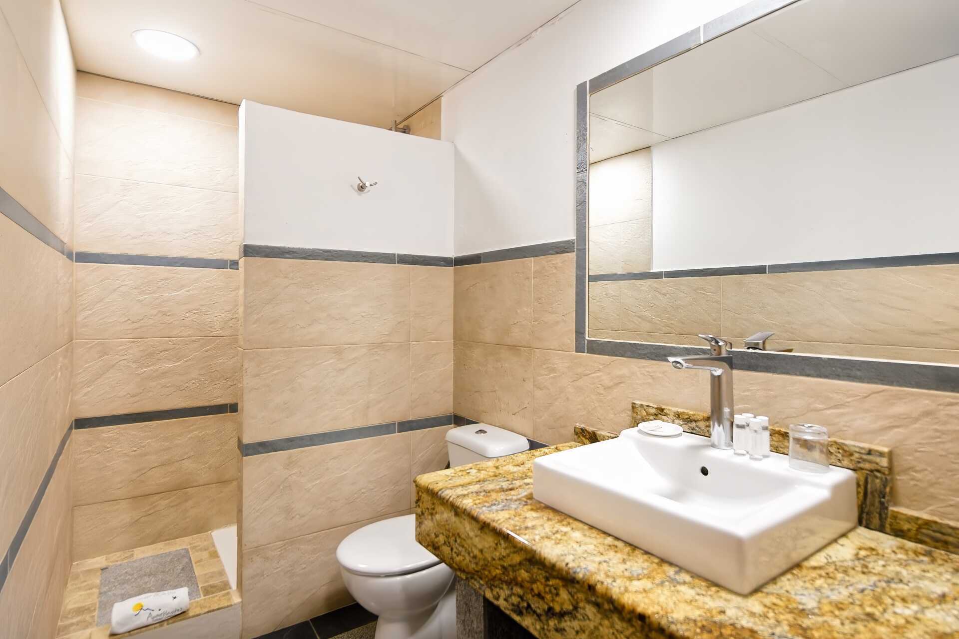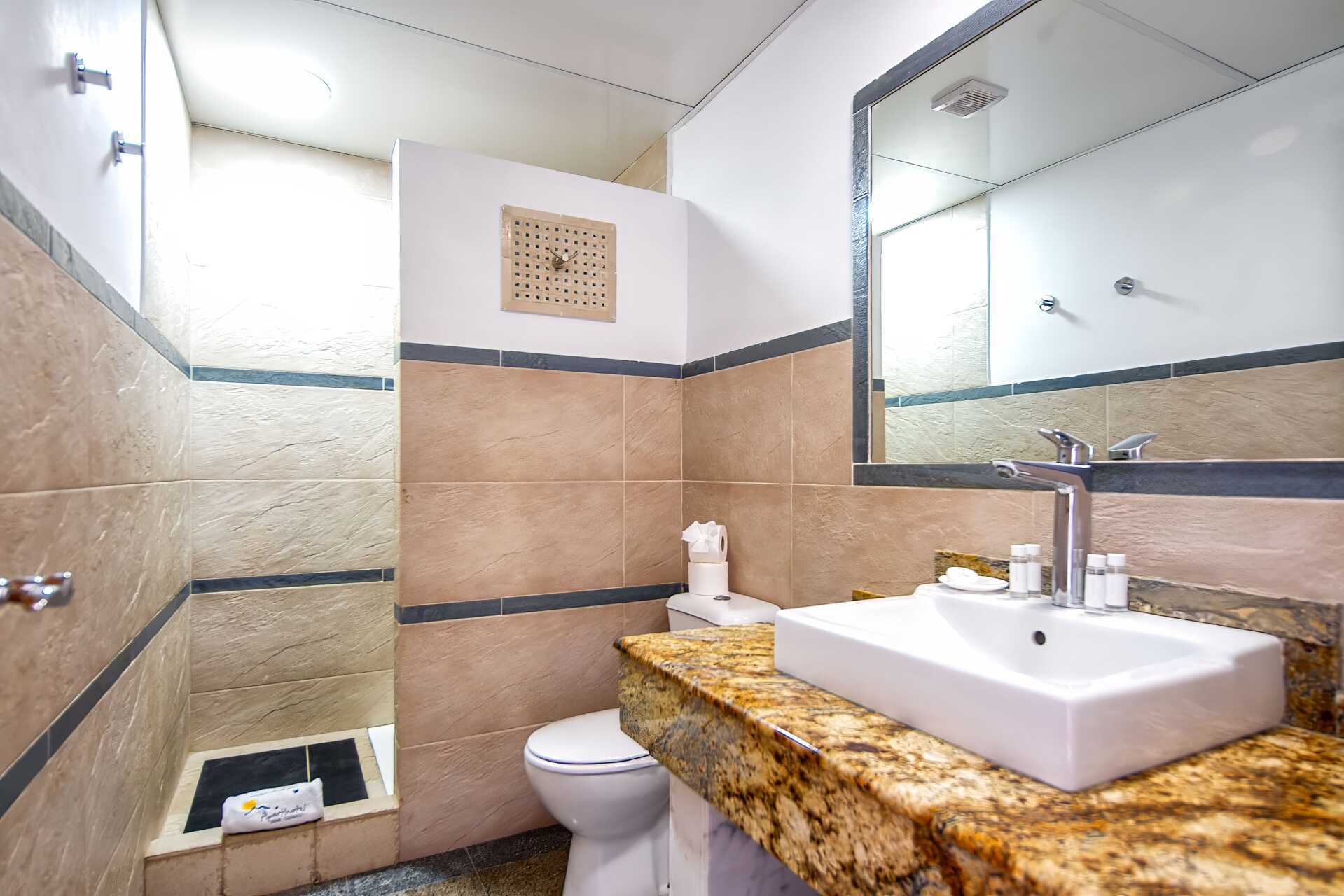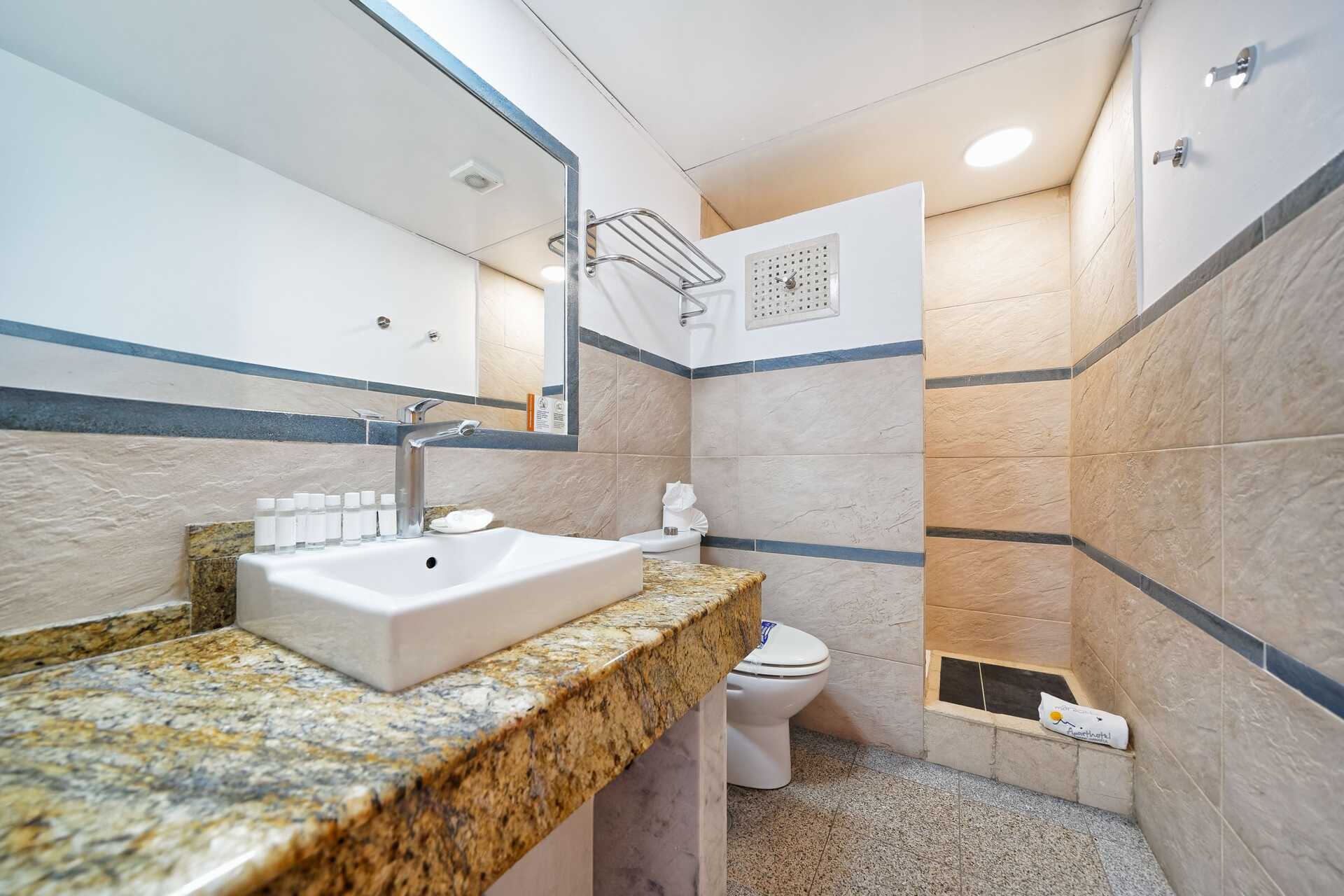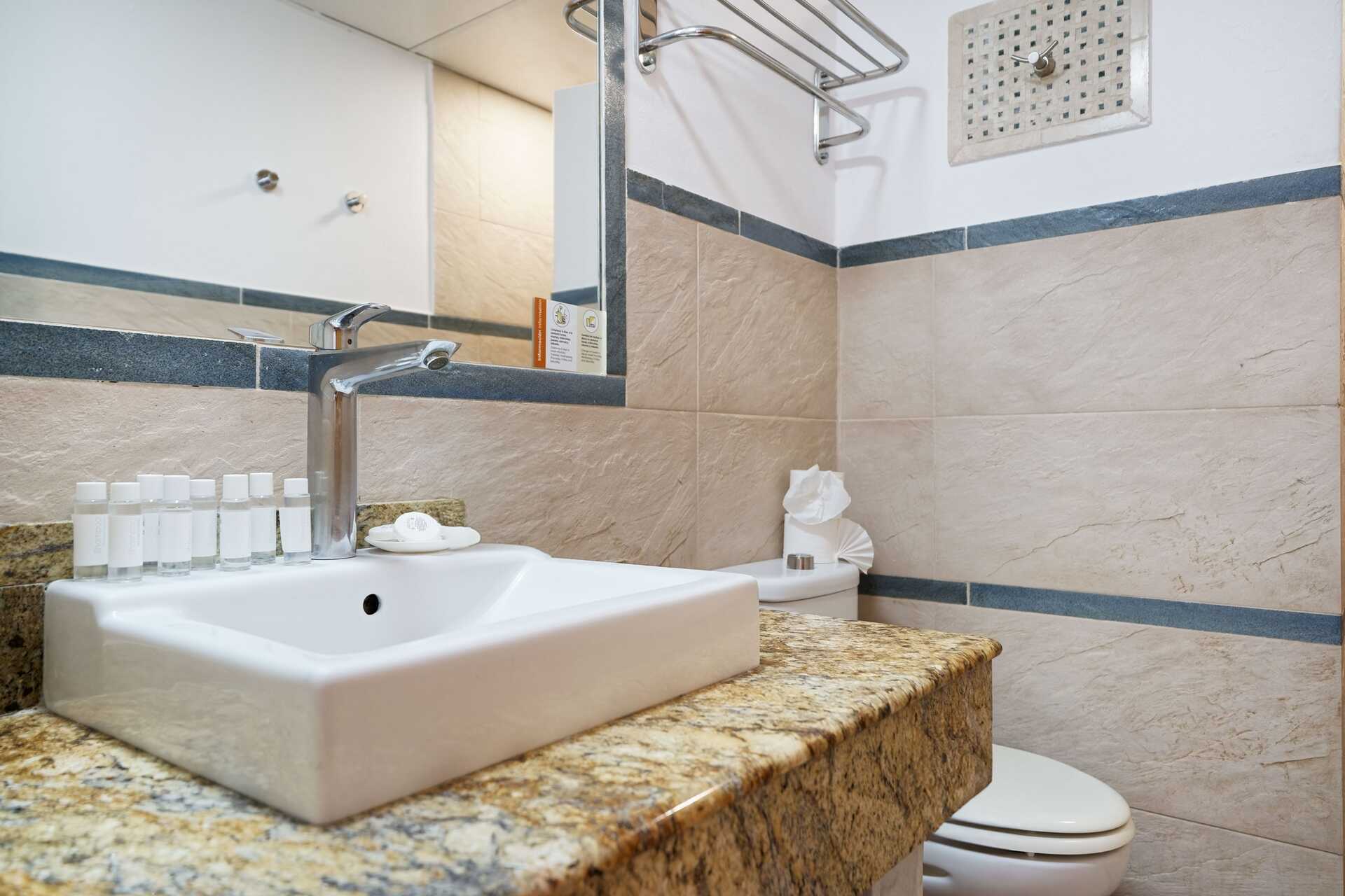 3-værelses lejlighed deluxe med balkon og havudsigt. Lejlighederne ligger på femte sal. To soveværelser og kombineret opholdsrum/minikøkken. Et soveværelse med dobbeltseng og et soveværelse med to enkeltsenge. Mulighed for ekstra opredning i sovesofa. Minikøkken med kogeplader, køleskab, kaffemaskine, el-kedel, brødrister og enkelt køkkenudstyr. Nogle lejligheder har en bardisk som spiseplads. Gratis wifi, aircondition og deponering. Tv med internationale kanaler. Hårtørrer. Badeværelse med bruser og toilet. Rengøring 7 gange om ugen.