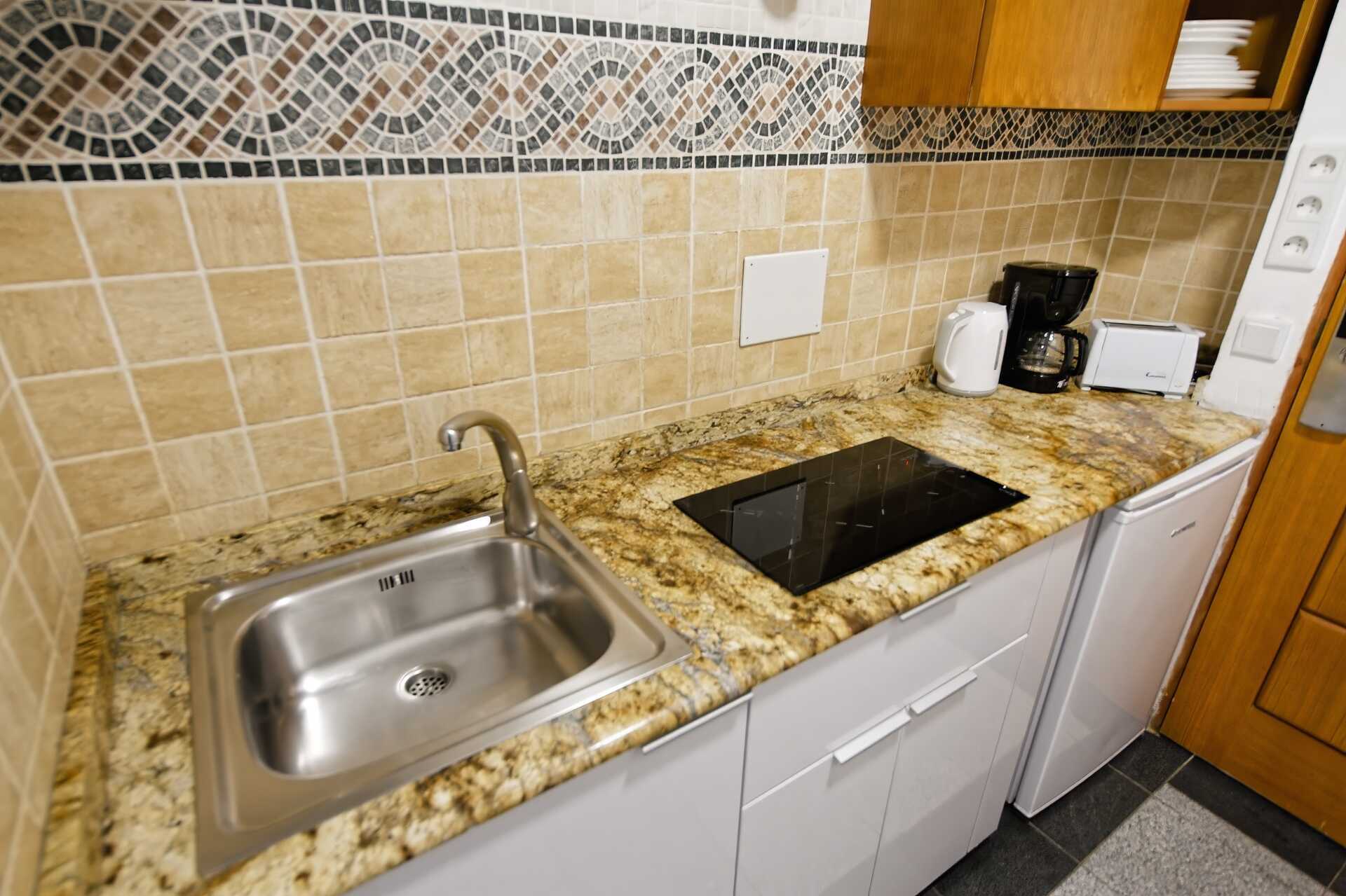 1-værelses lejlighed med balkon og havudsigt. Lejlighederne ligger på tredje eller fjerde sal. Kombineret soveværelse og minikøkken. En dobbeltseng. Minikøkken med kogeplader, køleskab, kaffemaskine, el-kedel, brødrister og enkelt køkkenudstyr. Nogle lejligheder har en bardisk som spiseplads. Gratis wifi og aircondition. Deponering mod betaling. Tv med internationale kanaler. Hårtørrer. Badeværelse med bruser og toilet. Rengøring 6 gange om ugen.