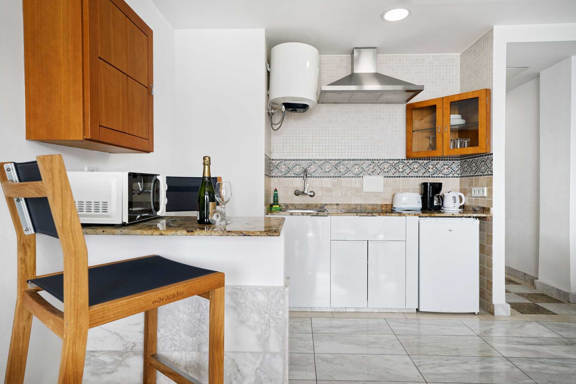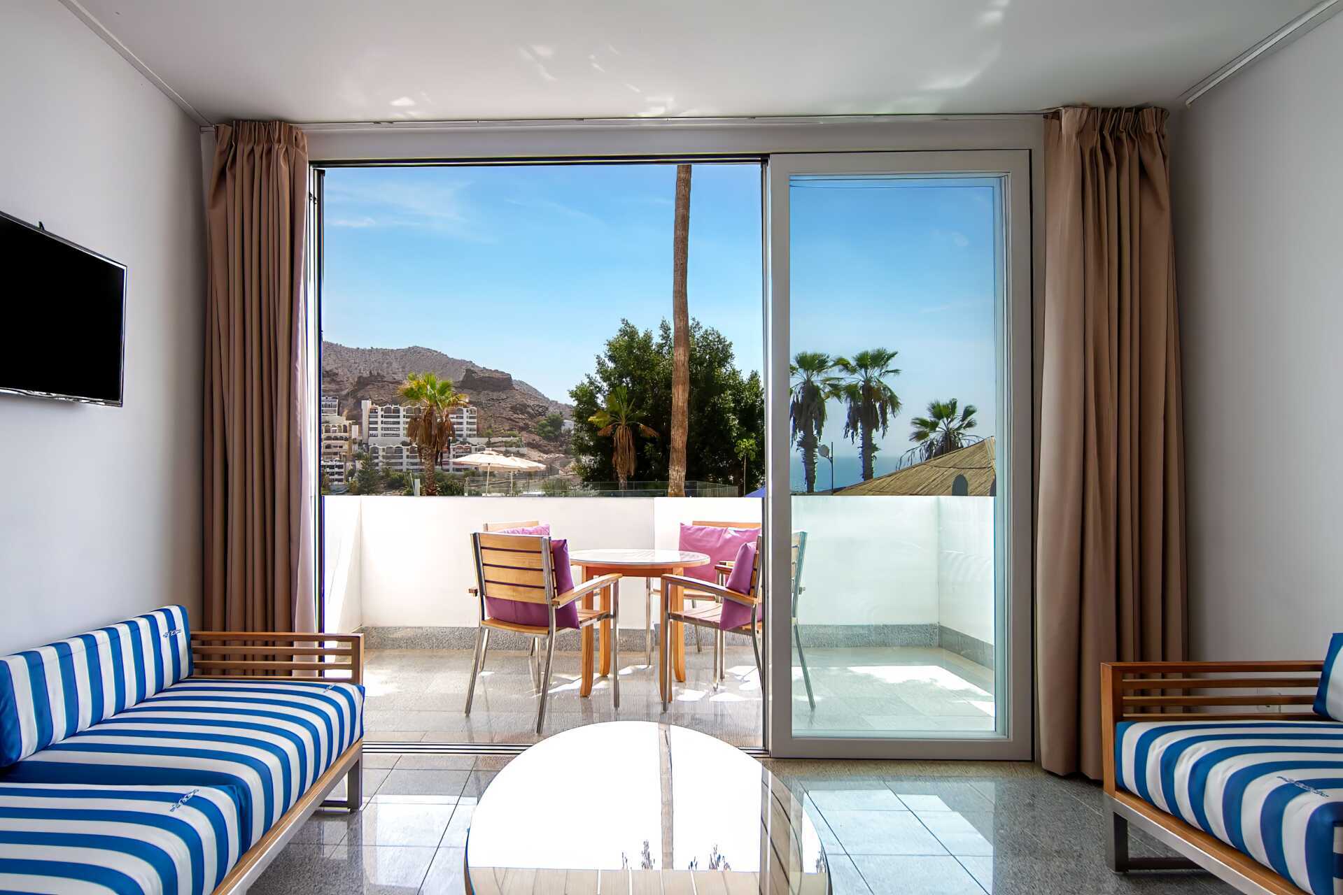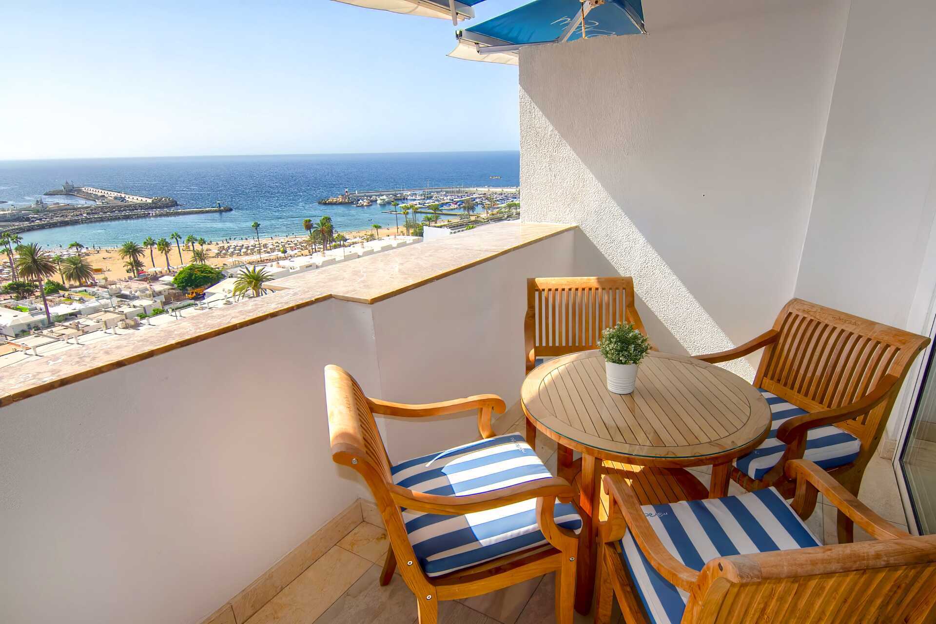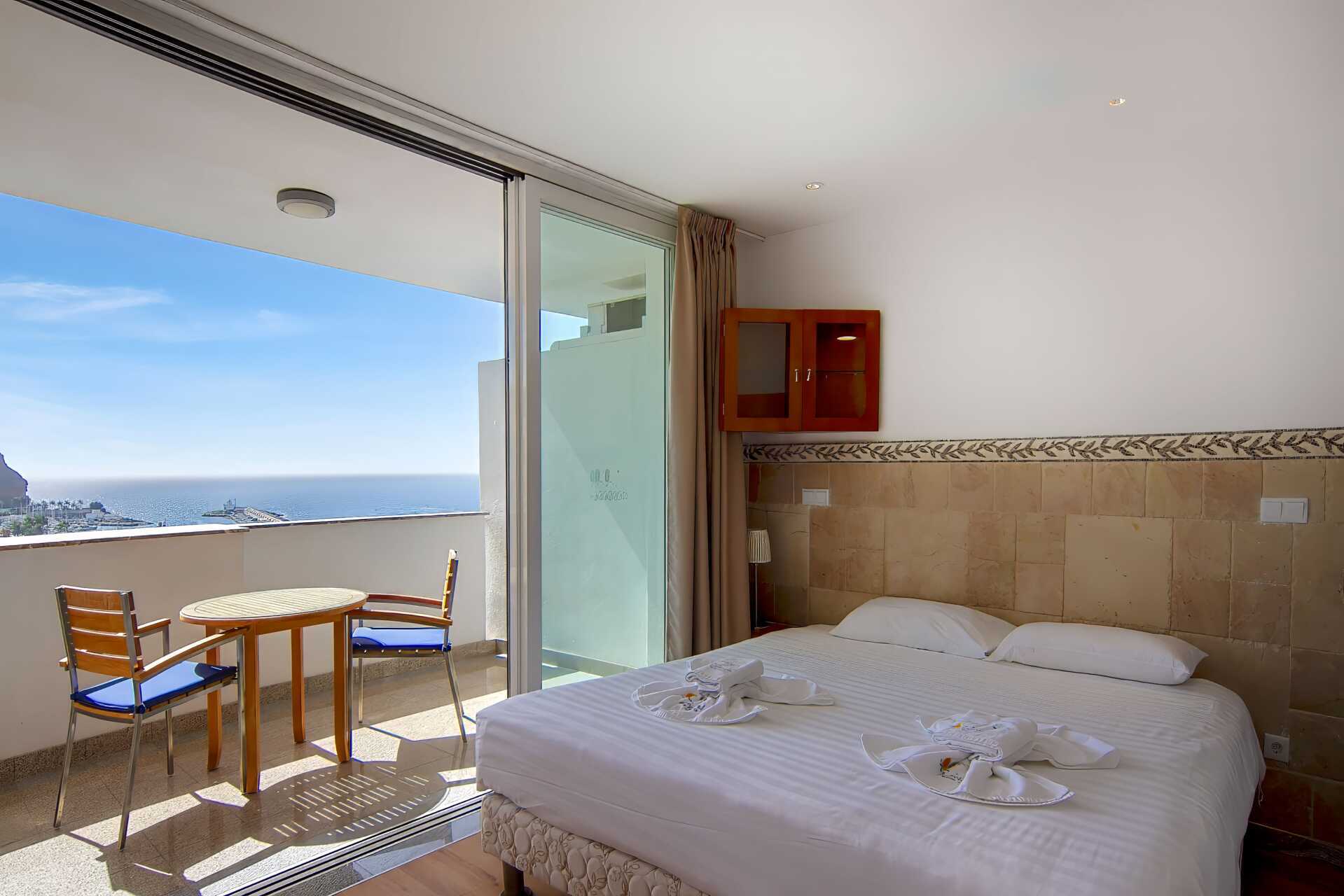 2-værelses lejlighed superior med balkon og havudsigt. Lejlighederne er beliggende på tredje eller fjerde etage. Soveværelse og kombineret opholdsrum/minikøkken. En dobbeltseng eller to enkeltsenge. Mulighed for ekstra opredning i sovesofa. Minikøkken med kogeplader, køleskab, kaffemaskine, el-kedel, brødrister og enkelt køkkenudstyr. Nogle lejligheder har en bardisk som spiseplads. Gratis wifi og aircondition. Deponering mod betaling. Tv med internationale kanaler. Hårtørrer. Badeværelse med bruser og toilet. Rengøring 6 gange om ugen.