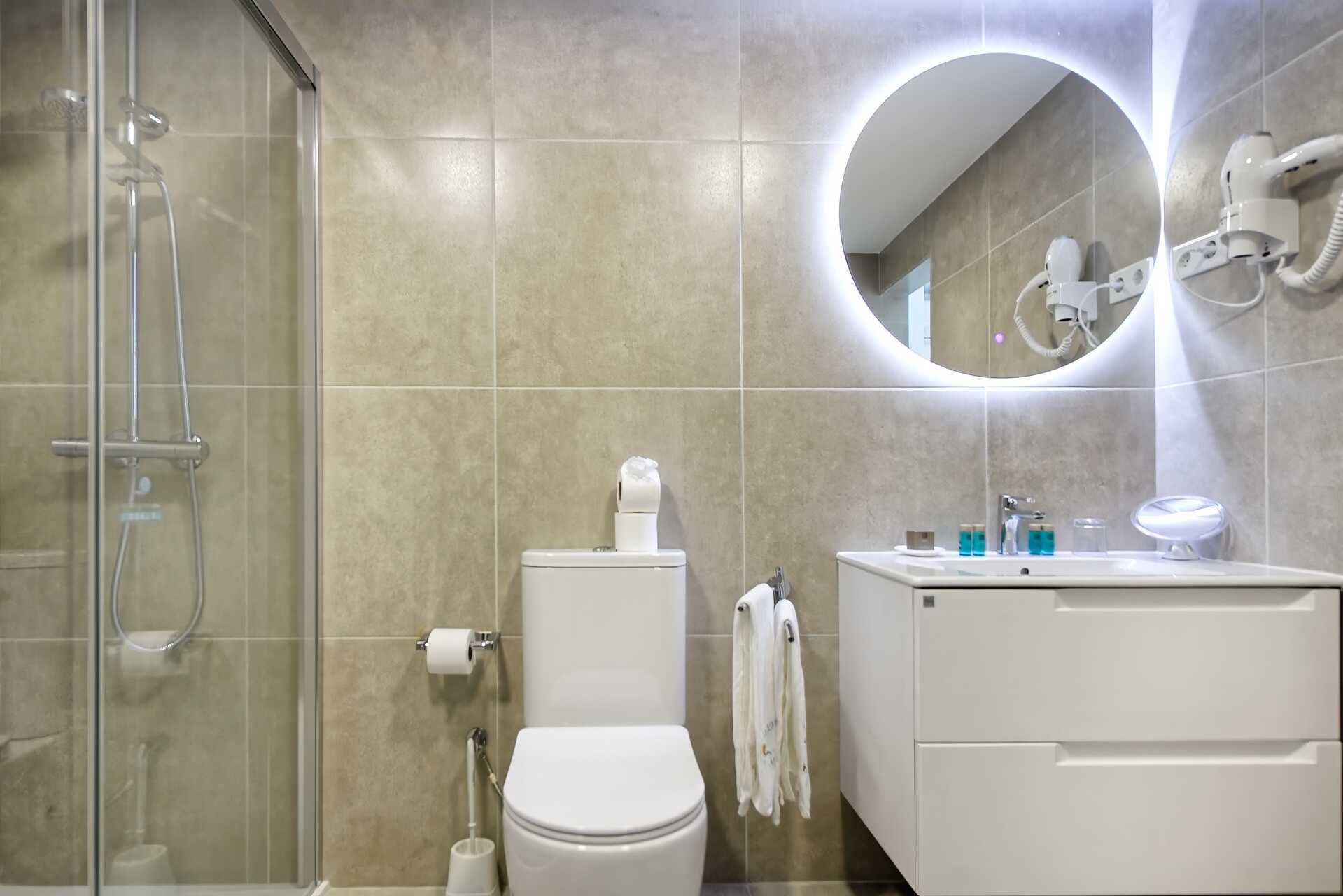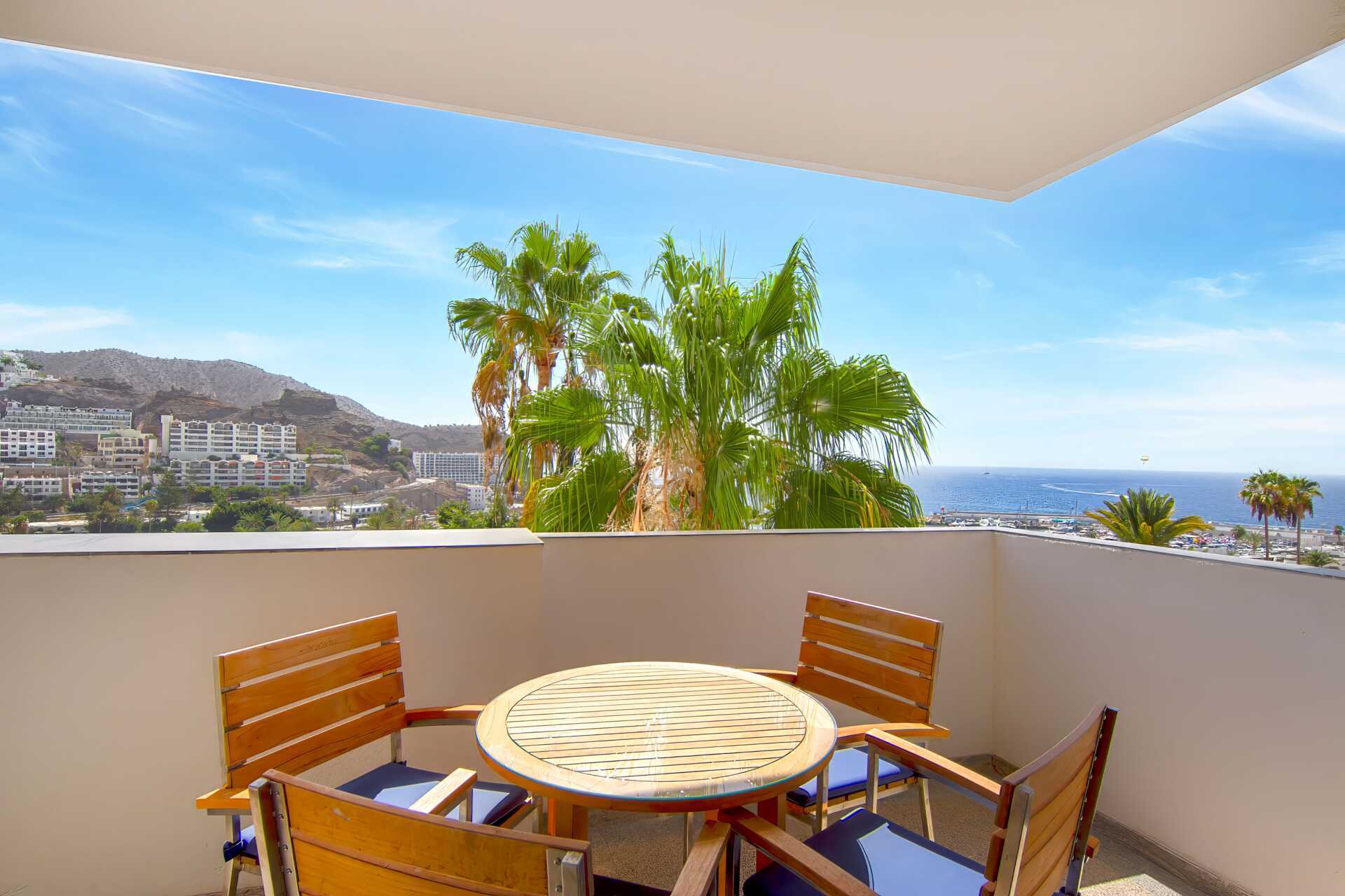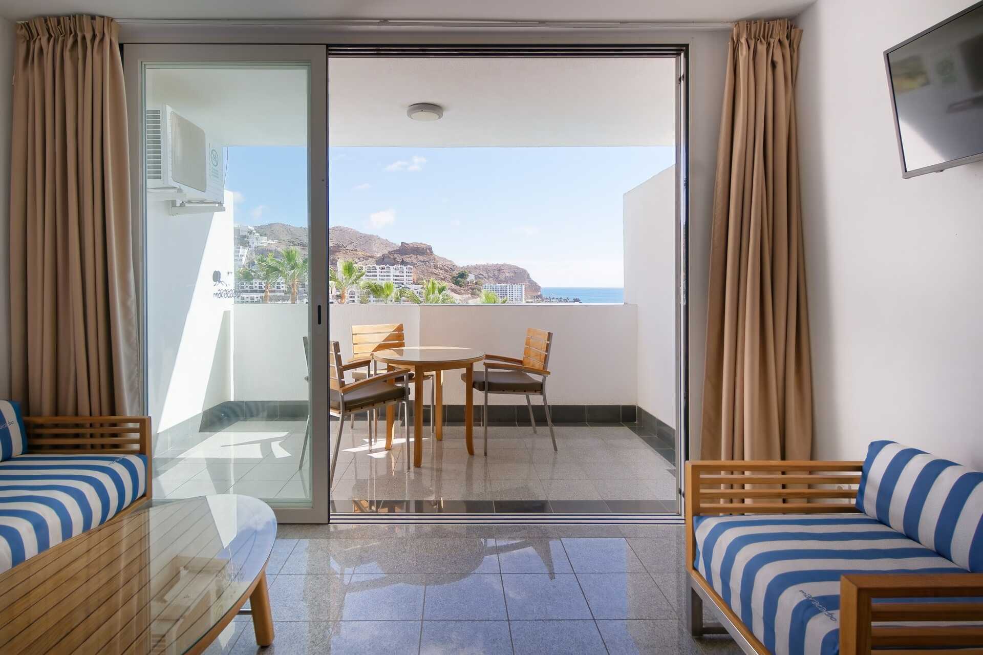 3-værelses lejlighed superior med balkon og havudsigt. Lejlighederne ligger på anden, tredje eller fjerde sal. To soveværelser og kombineret opholdsrum/minikøkken. Et soveværelse med dobbeltseng og et soveværelse med to enkeltsenge. Mulighed for ekstra opredning i sovesofa. Minikøkken med kogeplader, køleskab, kaffemaskine, el-kedel, brødrister og enkelt køkkenudstyr. Nogle lejligheder har en bardisk som spiseplads. Gratis wifi og aircondition. Deponering mod betaling. Tv med internationale kanaler. Hårtørrer. Badeværelse med bruser og toilet. Rengøring 6 gange om ugen.