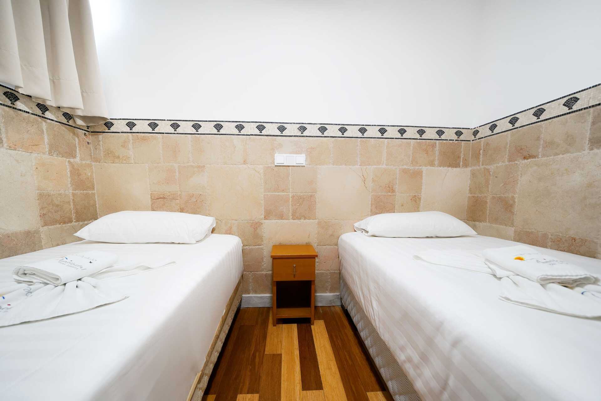 2-værelses lejlighed deluxe med balkon og havudsigt. Lejlighederne ligger på femte sal. Soveværelse og kombineret opholdsrum/minikøkken. En dobbeltseng eller to enkeltsenge. Mulighed for ekstra opredning i sovesofa. Minikøkken med kogeplader, køleskab, kaffemaskine, el-kedel, brødrister og enkelt køkkenudstyr. Nogle lejligheder har en bardisk som spiseplads. Gratis wifi, aircondition og deponering. Tv med internationale kanaler. Hårtørrer. Badkar med bruser og toilet. Rengøring 7 gange om ugen.