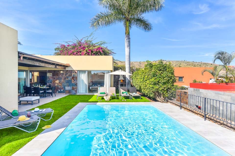 Par 4-villaerne er en fin samling af private ejendomme, ideelt beliggende i det prestigefyldte Salobre Golf Resort, og tilbyder et komfortabelt opholdsrum i ét plan med stilfulde, moderne møbler. Hver villa har sin egen unikke karakter og charme med en farverig og imponerende indretning, og de kan alle prale af et vidunderligt, indbydende udendørs sidde-/spiseområde, hvor man kan nyde mange aftener i det kanariske solskin. Hver villa er meget veludstyret med aircondition, fladskærms-tv og et komplet udvalg af køkkenapparater for at sikre, at din ferie med selvhusholdning bliver så stressfri som muligt. Du kan også nyde din egen private swimmingpool, når du har tid! En anden fantastisk detalje ved Salobre Golf Villas er den daglige levering af frisk brød, helt gratis! For dem, der ønsker at bevæge sig væk fra denne rolige oase, ligger den nærliggende populære badeby Maspalomas en kort køretur væk.