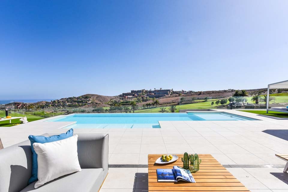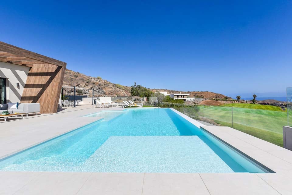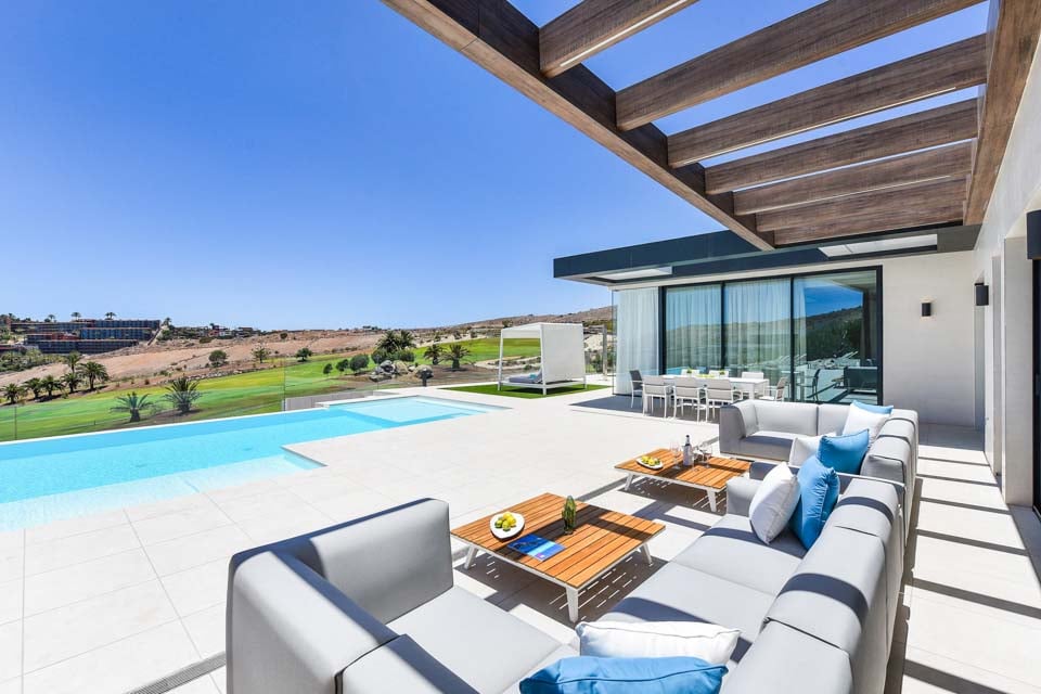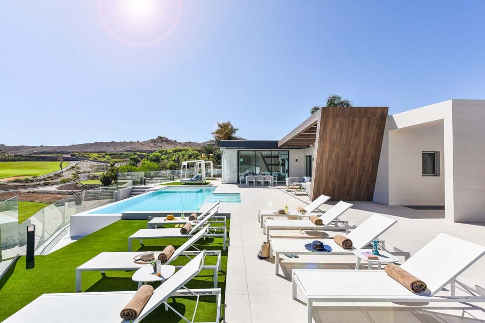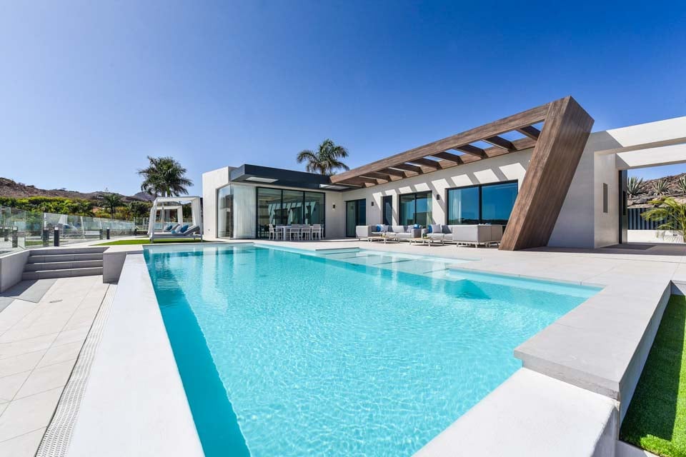 Villa Sunset er en unik ejendom med seks soveværelser. Denne rummelige ejendom i to etager er designet med større grupper i tankerne og vil tage pusten fra dig. Denne fantastiske ejendom er designet med minimalistiske interiører, neutrale farver og et rummeligt ydre, og er et must-see. Den store, opvarmede* swimmingpool med integrerede undervandssolsenge og elegante, fejende trin er svær at overse. Med udsigt over Salobre Golfbane er dette stykke paradis ideelt til en dag ved poolen. Liggestole, hyggelige sofaer og skyggefulde dagsenge er det ideelle sted til en dag, hvor du bedst kan nyde solskinnet med stil. Alfresco-spisning bliver nemmere med flere spisesteder at vælge imellem og et udendørs madlavningsområde, komplet med en dobbelt grill, vask og bordplader. Det har aldrig været bedre at lave mad under åben himmel med havudsigt i det fjerne og panoramaudsigt over den frodige golfbane. Hvis du kan slippe væk fra den smukke natur, så tag indenfor, hvor du finder seks soveværelser og syv badeværelser fordelt på to etager. Den hyggelige stue er i åben planløsning med et fuldt udstyret køkken og udbrud af hvide, gule og blå farver. Gulv-til-loft terrassedøre oversvømmer ejendommen med naturligt lys, mens hele villaen også har aircondition, et must til de varme sommernætter.