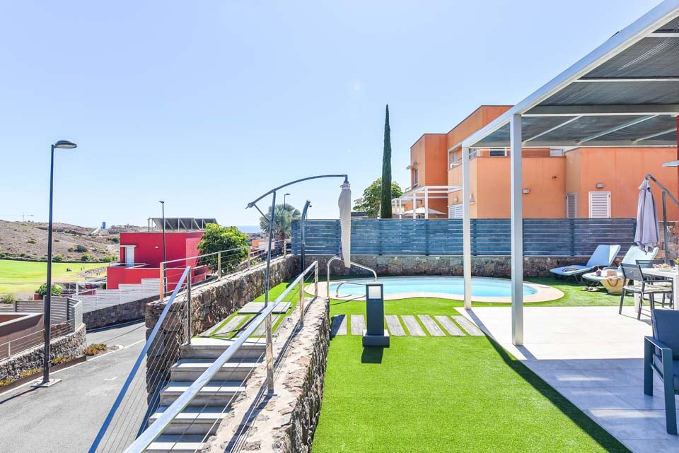 Sving dig ind i paradiset på Villa Vista Golf 5, den ultimative golfspillers drøm. Denne fantastiske villa har en ideel beliggenhed på Salobre Golfbane og placerer dig lige midt i de livlige fairways, svajende palmer og en betagende udsigt over bjergskråningen. Så tilbring afslappende morgener ved din private pool, og tag derefter en runde golf!