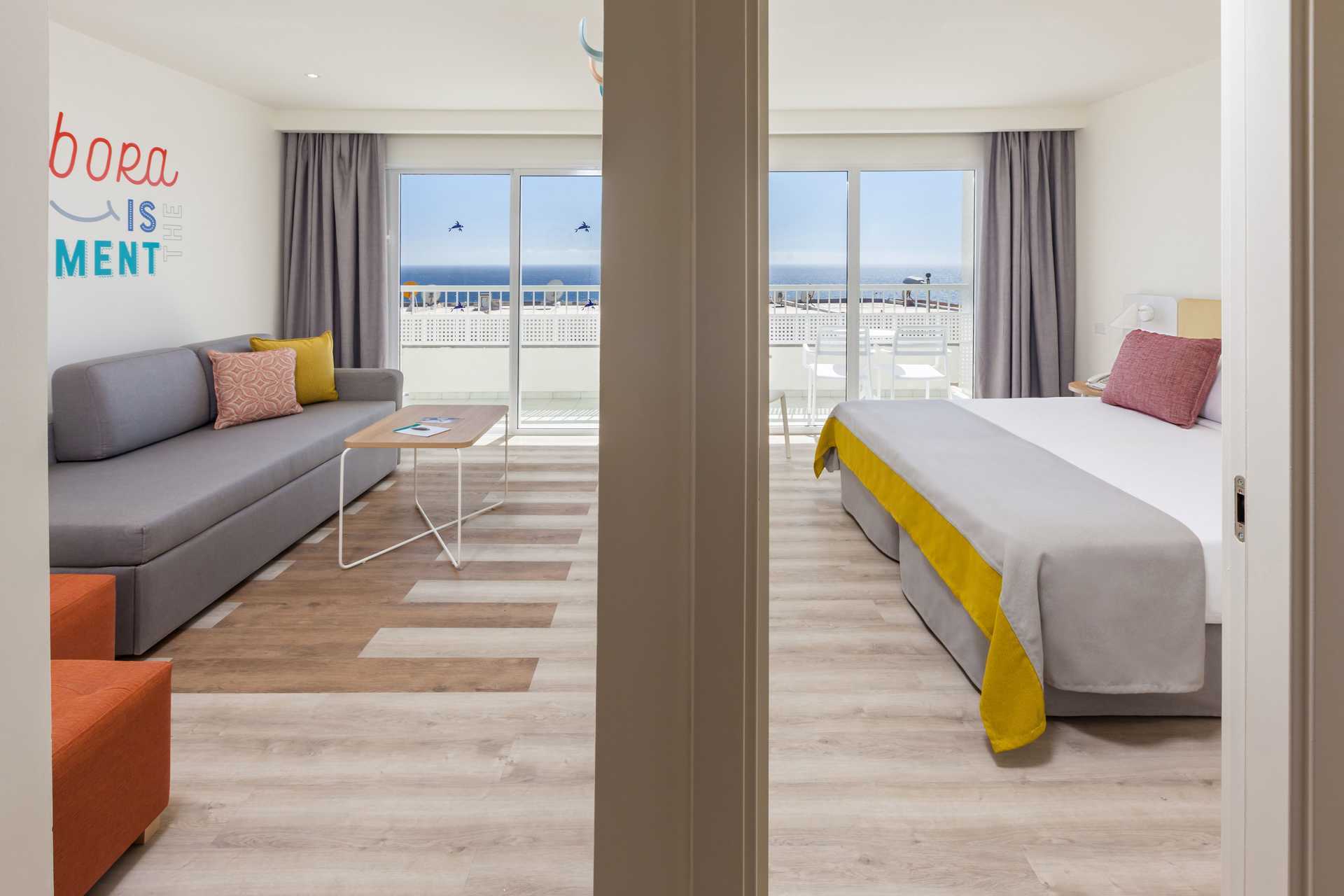 Familie-værelser med balkon eller terrasse. Værelserne med terrasse har et legetelt til børn på værelset. To enkeltsenge. Mulighed for ekstra opredning i sovesofa. Gratis wifi og aircondition. Deponering mod betaling. Minibar mod betaling. El-kedel. Tv med internationale kanaler. Hårtørrer. Badeværelse med bruser og toilet. Rengøring 7 gange om ugen.