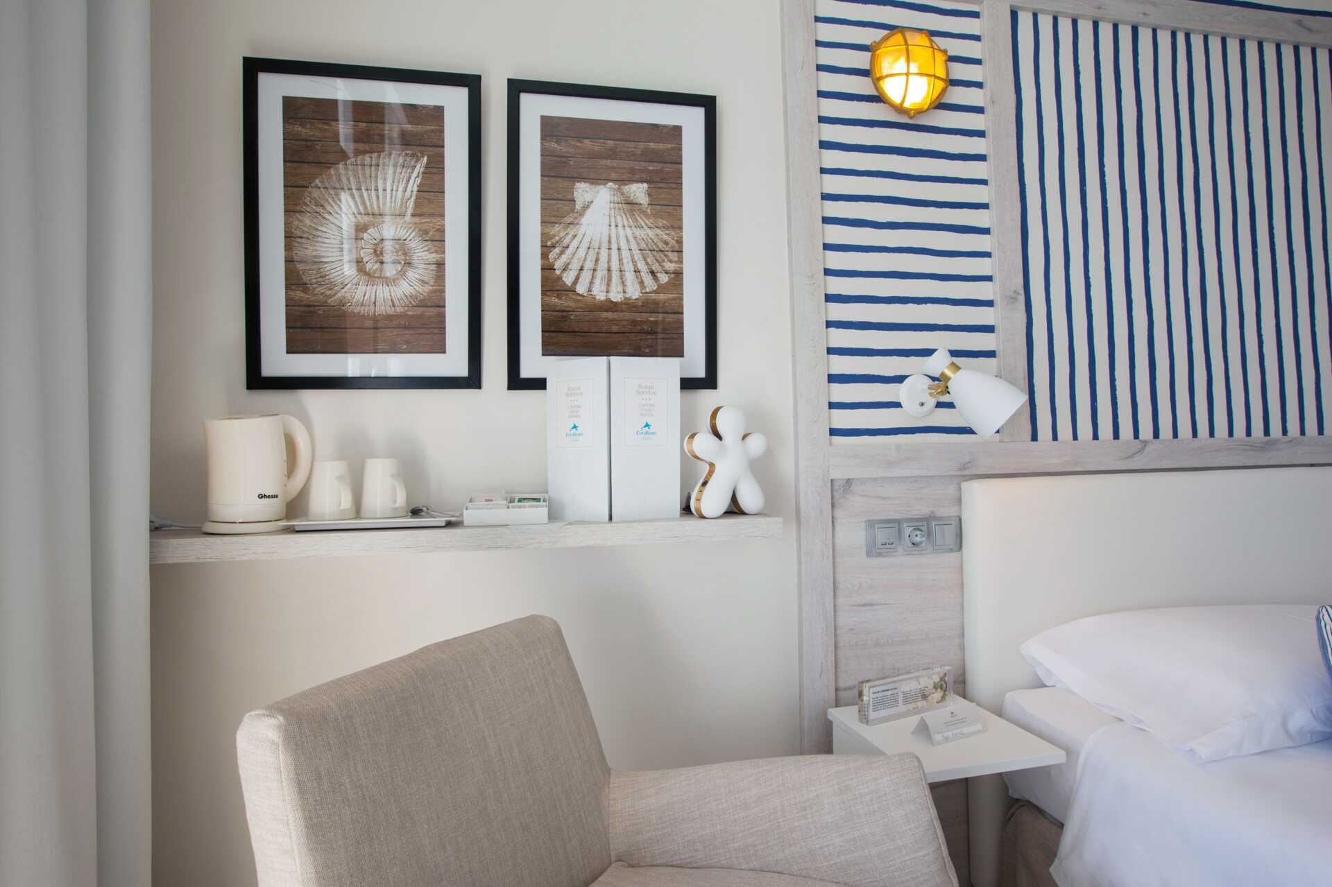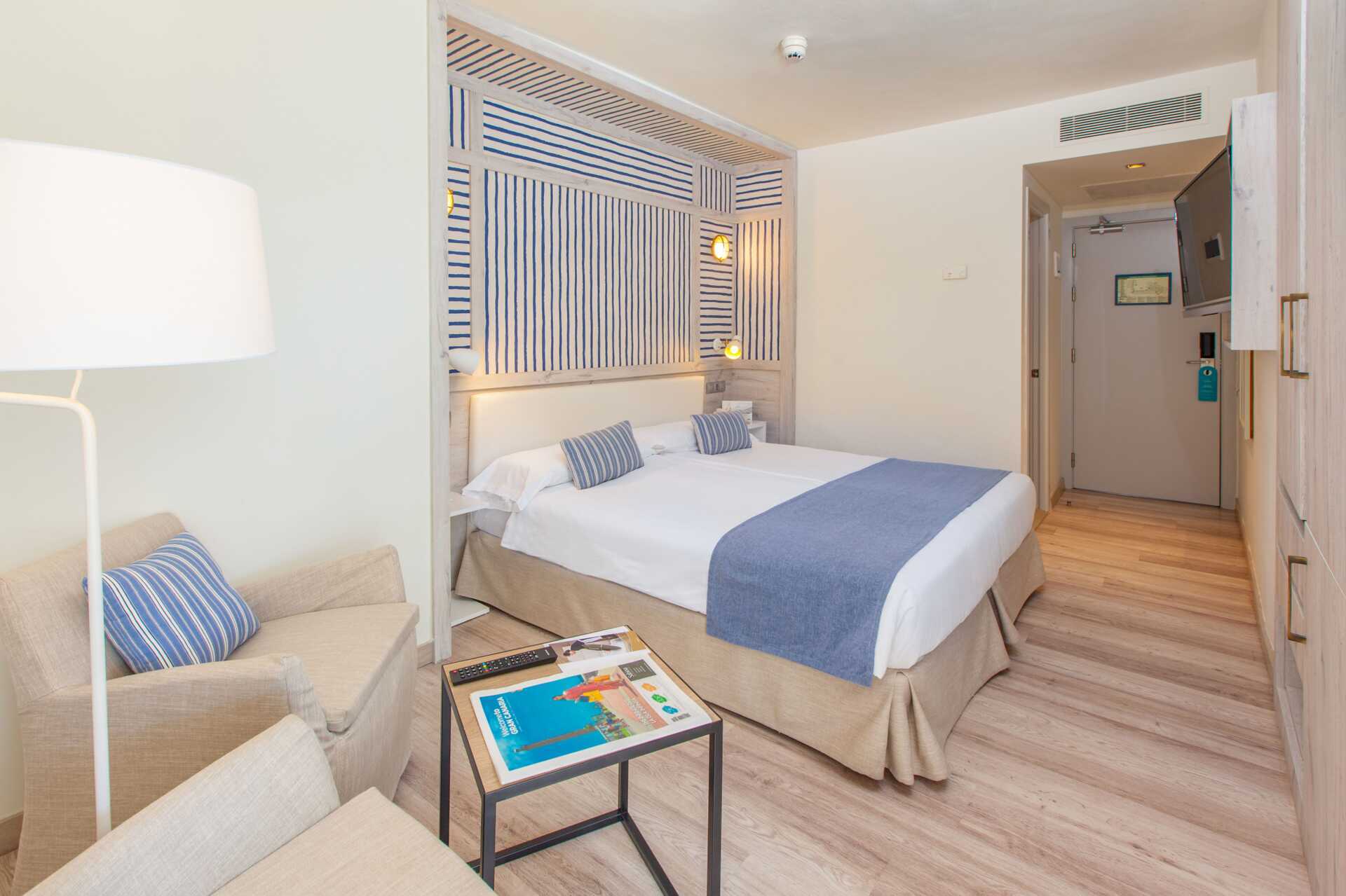 Dobbeltværelse med balkon. Udsigten kan være delvist til havet og/eller pooludsigt. En dobbeltseng eller to enkeltsenge. Gratis wifi og aircondition. Deponering mod betaling. Minibar mod betaling. El-kedel og kaffe/te. Tv med internationale kanaler. Hårtørrer. Badeværelse med bruser og toilet. Rengøring 5 gange om ugen.