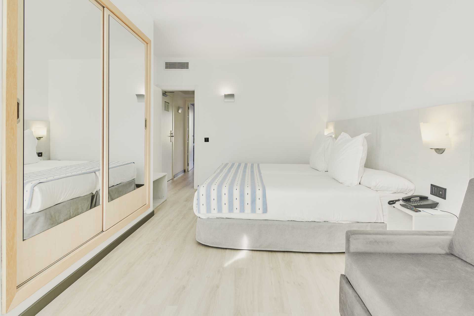 Familie-værelser med balkon eller terrasse. Familie-værelserne er beliggende nær pools og består af to soveværelser, et med dobbeltseng og et med to enkeltsenge. Mulighed for ekstra opredning i sovesofa. Gratis wifi og aircondition. Deponering mod betaling. Køleskab. El-kedel og kaffe/te. Tv med internationale kanaler. Hårtørrer. Badeværelse med bruser og toilet. Rengøring 7 gange om ugen.