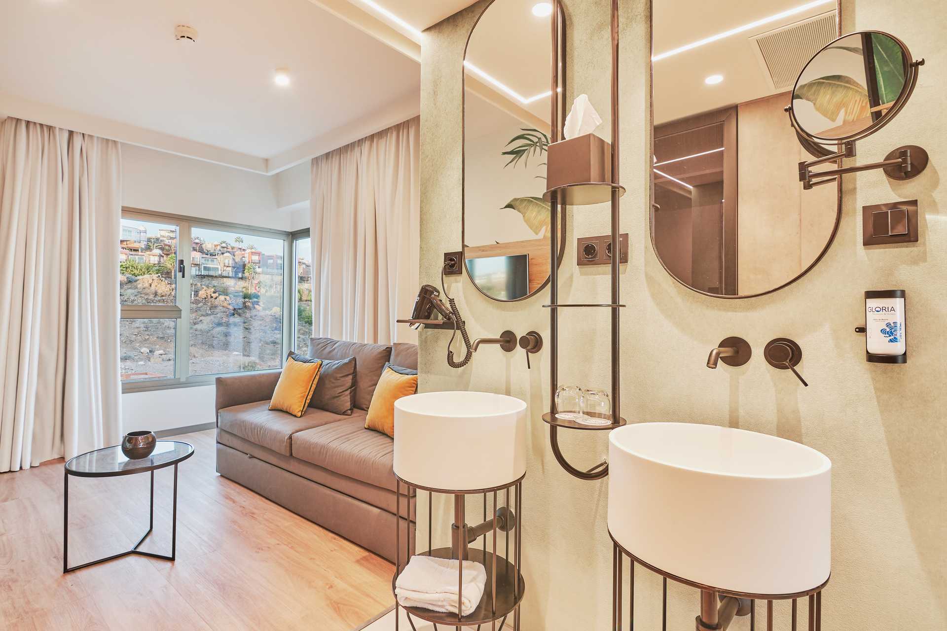 Junior-suiter med balkon med havudsigt. Suiterne består af et soveværelse og opholdsrum med åben planløsning. En dobbeltseng. Mulighed for ekstra opredning i sovesofa. Gratis wifi og aircondition. Deponering mod betaling. Køleskab. Tv med internationale kanaler. Hårtørrer. Badekar i soveværelset. I soveværelset er der åben planløsning til håndvasken. Separat bruser med glasvægge. Separat toilet. Rengøring 7 gange om ugen.
