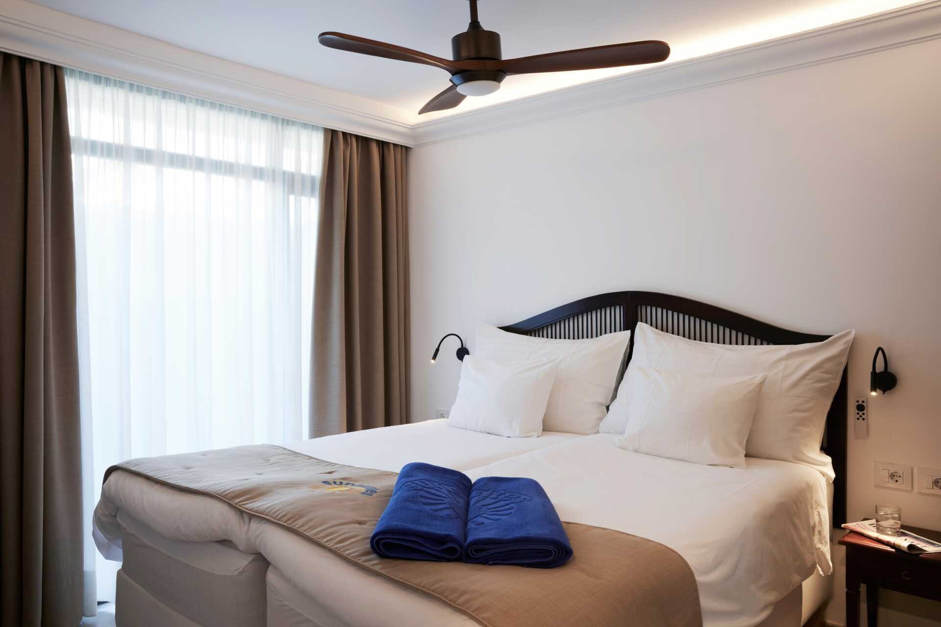 2-værelses lejligheder superior med balkon og havudsigt. Lejlighederne består af soveværelser og kombineret opholdsrum/minikøkken. To enkeltsenge. Mulighed for ekstra opredning i fold ud-seng. Minikøkken med kogeplader, køleskab, el-kedel, kaffemaskine og enkelt køkkenudstyr. Gratis wifi. Aircondition og deponering mod betaling. Loftsvifte og tredobbelt vindue i soveværelset. Hårtørrer. Badeværelse med bruser og toilet. Rengøring 5 gange om ugen.