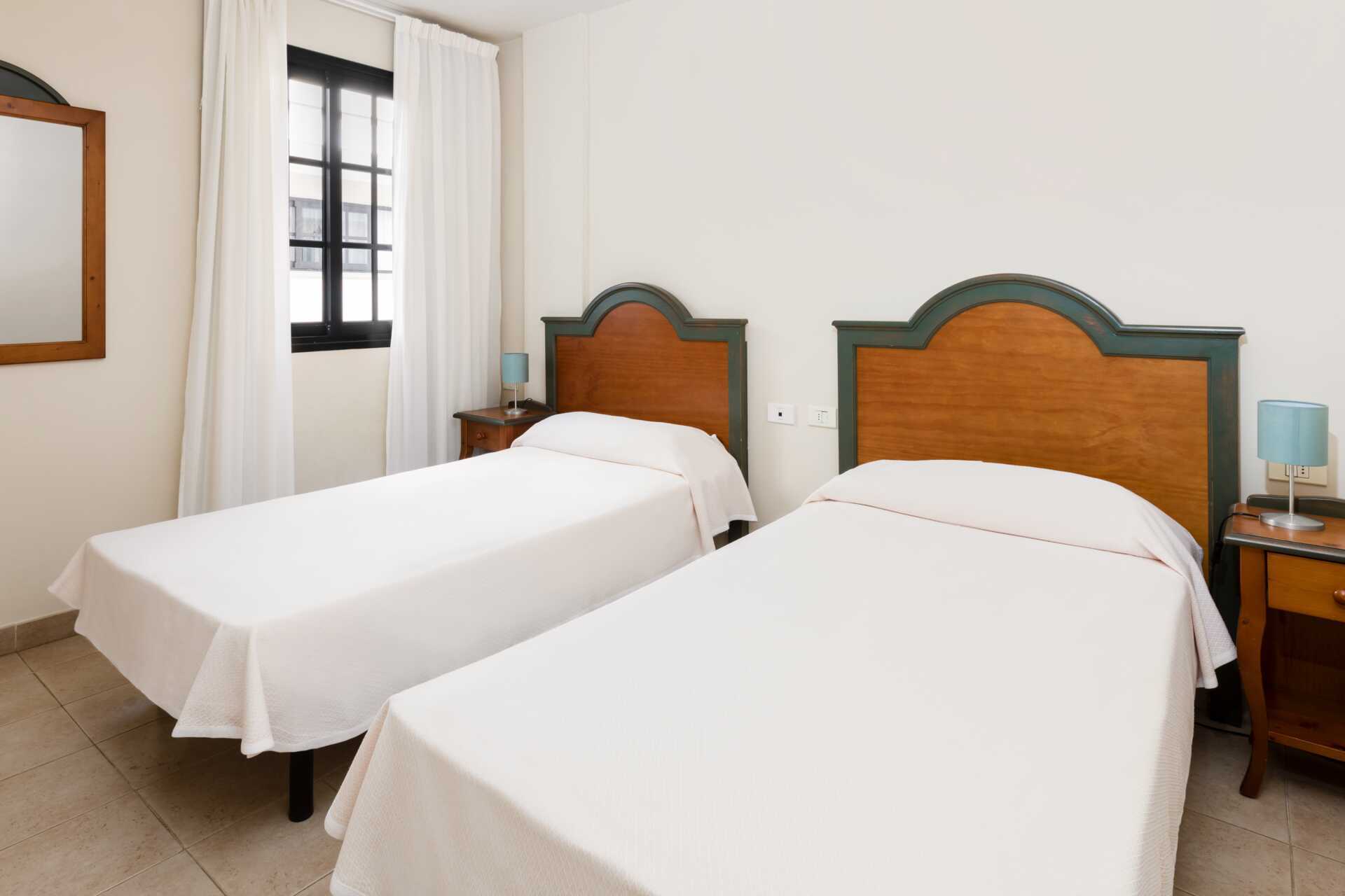 2-værelses lejligheder med fransk balkon. Soveværelse og kombineret opholdsrum med minikøkken. To enkeltsenge. Mulighed for ekstra opredning i sovesofa. Minikøkken med kogeplader, køleskab og enkelt køkkenudstyr. Gratis wifi og deponering. Tv med internationale kanaler. Hårtørrer. Badeværelse med badekar eller bruser og toilet. Rengøring 5 gange om ugen.