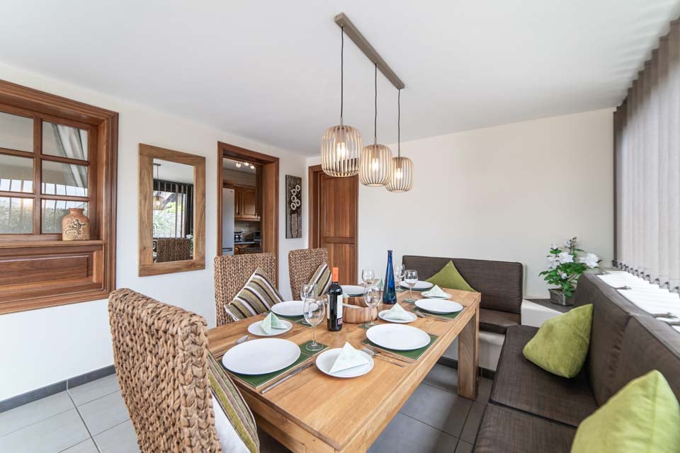 Indvendigt giver lyse mønstre og traditionel spansk indretning denne villa en unik karakter og charme. Med tre soveværelser, tre badeværelser, en stue og et veludstyret køkken med satellit-tv, Wi-Fi, opvaskemaskine og mikrobølgeovn, hvad mere kan man bede om? I vinterhaven finder du også et polstret siddeområde og spisefaciliteter med plads nok til, at alle gæster kan sidde og omgås hinanden.