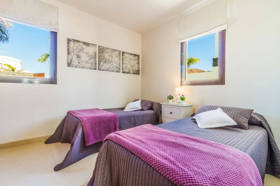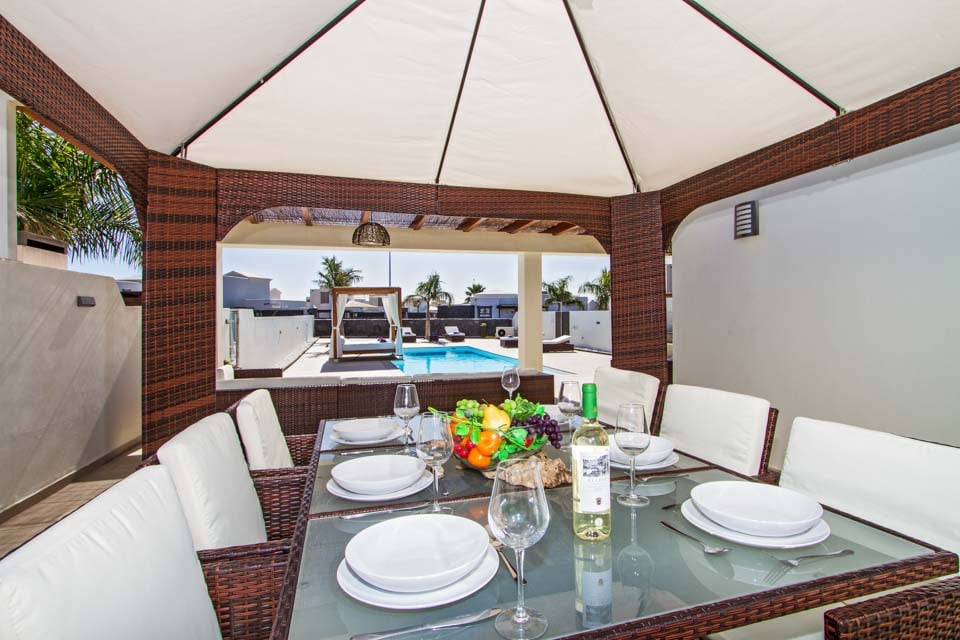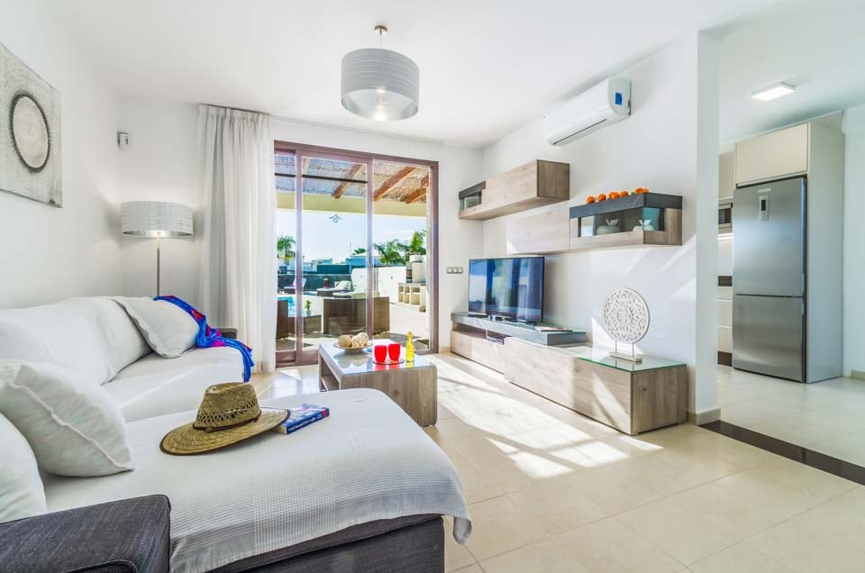 Villa Anibal ligger i hjertet af det eksklusive boligområde Las Maretas vest for Playa Blanca og er en af tre moderne og stilfulde villaer fyldt med faciliteter til den perfekte villaferieoplevelse. I stueetagen er der en moderne og komfortabel opholdsstue med flere britiske kanaler, spillekonsol og spiseplads til seks personer, der fører til et moderne og fuldt udstyret køkken. Der er et soveværelse med to enkeltsenge samt et familiebadeværelse på denne etage. På første sal finder du det store soveværelse med dobbeltseng og brusebad samt endnu et soveværelse med to enkeltsenge. Begge soveværelser har adgang til den rummelige terrasse. Stuen og alle soveværelser har aircondition for din bekvemmelighed. Det rummelige udendørs opholdsområde er der, hvor du vil tilbringe det meste af din tid. En fantastisk fritformet swimmingpool (opvarmning inkluderet mellem november og april) ligger i midten, under den store pergola er der masser af komfortable rattan-sæder og yderligere spisefaciliteter samt en murstensgrill med vask til udendørs spisning. Der er en dagseng ved swimmingpoolen til dem, der ønsker at slappe af, og der er også bordtennis og billardbord til rådighed for gæsterne. Der ligger adskillige barer og restauranter inden for gåafstand, og der er også regelmæssig busforbindelse til Playa Blanca by i nærheden. Søstervillaerne Fito og Pedro ligger også i nærheden for dem, der søger større grupper.