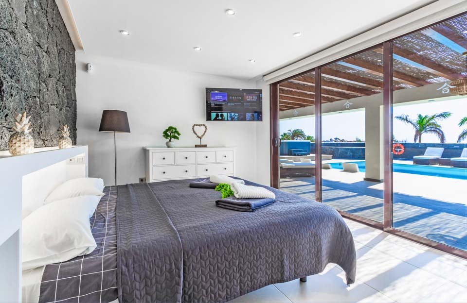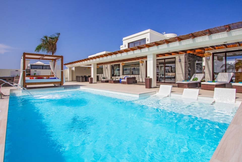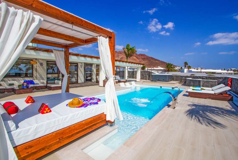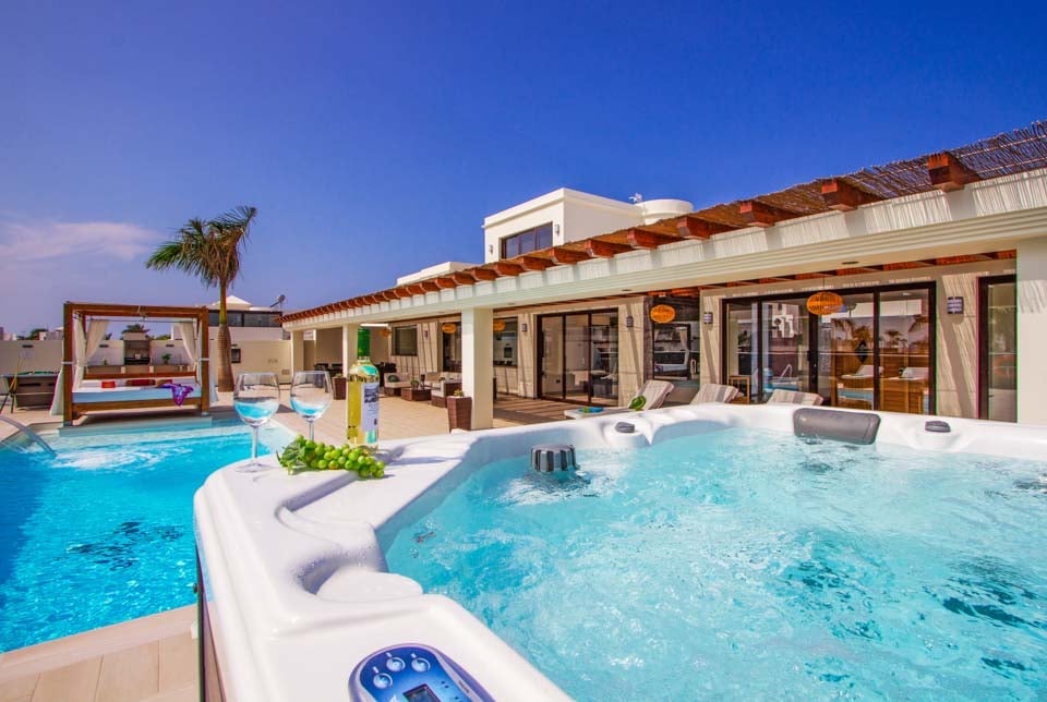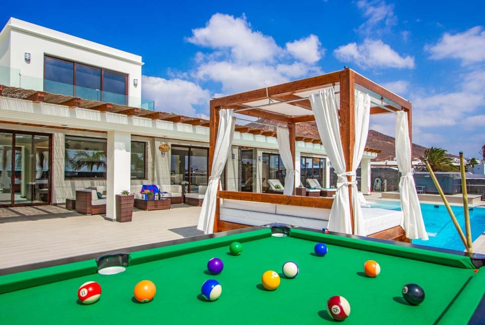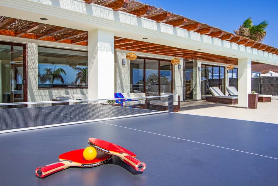 Villaens yderside er domineret af en privat swimmingpool, som er omgivet af en elegant flisebelagt terrasse med rigelig plads til at slappe af på en af liggestolene eller måske den luksuriøse dagseng. Der er endda et spabad, poolbord og bordtennis for dem, der ønsker at få mest muligt ud af deres ferie. Hvis du er interesseret i at holde dig i form og forkæle dig selv, vil du blive glad for at vide, at der findes fitnessudstyr og sauna til rådighed for den perfekte villaferieoplevelse på Lanzarote.