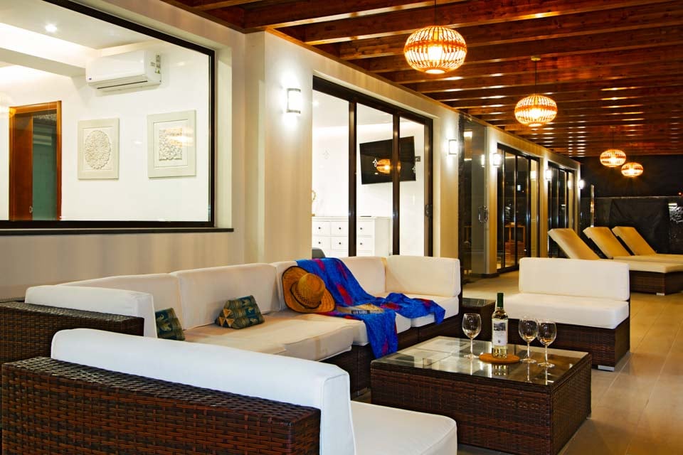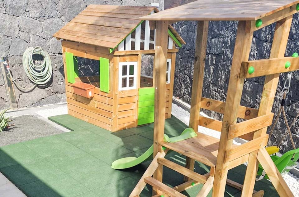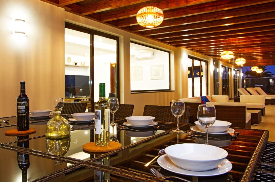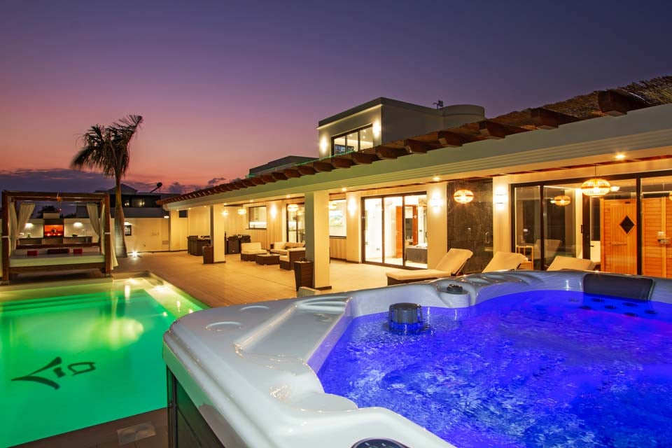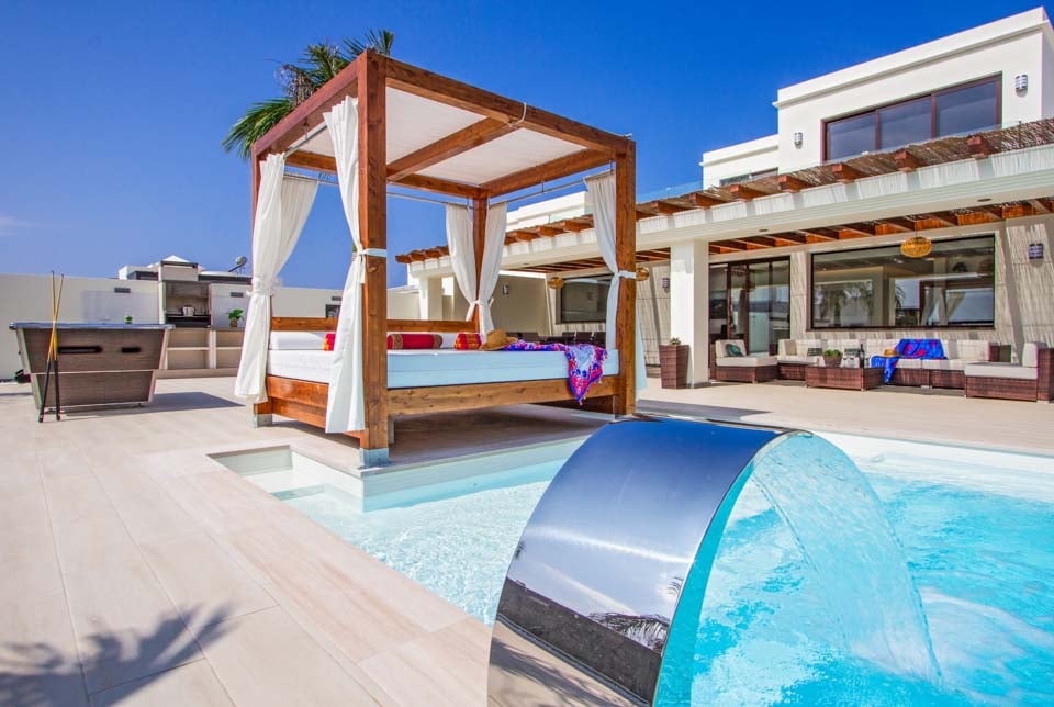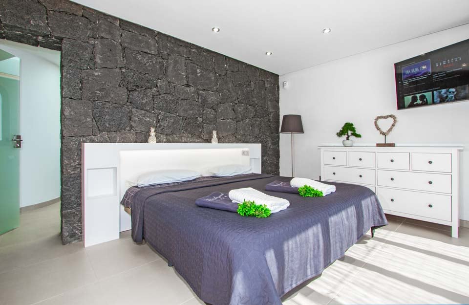 Villaens yderside er domineret af en privat swimmingpool, som er omgivet af en elegant flisebelagt terrasse med rigelig plads til at slappe af på en af liggestolene eller måske den luksuriøse dagseng. Der er endda et spabad, poolbord og bordtennis for dem, der ønsker at få mest muligt ud af deres ferie. Hvis du er interesseret i at holde dig i form og forkæle dig selv, vil du blive glad for at vide, at der findes fitnessudstyr og sauna til rådighed for den perfekte villaferieoplevelse på Lanzarote.