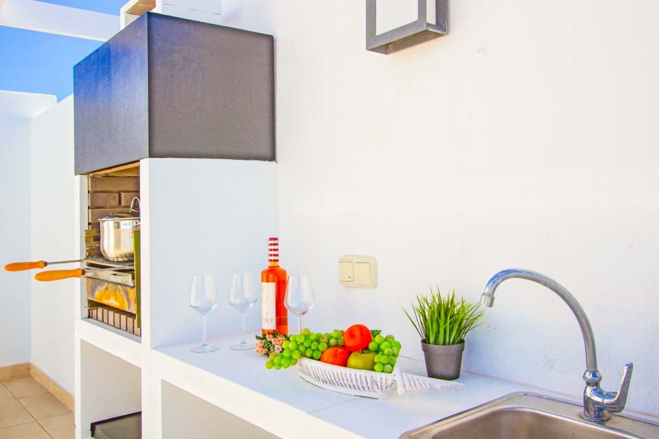 Soveværelset med eget badeværelse og stuen fører begge ud til den stilfuldt anlagte poolterrasse med pergola, udendørs lounge/siddeområde og spiseplads. Murstensgrillen, den udendørs vask og det udendørs arbejdsområde er perfekte til alle dine udendørs spisningsbehov, og den opvarmede swimmingpool er flankeret af flere moderne liggestole. Terrassen har endda et bordtennisbord og er det perfekte sted at slappe af og solbade om dagen og se de smukke solnedgange på Lanzarote om aftenen.