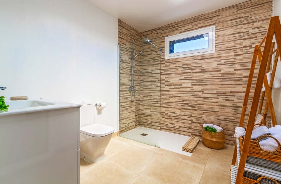 For at komme til villaen er der en sti på 120 cm. Hoveddøren har en bredde på 79 cm, mens de andre adgangsdøre har en bredde på 150 cm. Stien til poolen er 250 cm bred. Jorden udenfor er plan med en kant på 2 cm over terrassedørene. Udendørs er der en flisebelagt terrasse, som er flad og rummelig. Selve poolen har trinadgang. Inde i villaen er den bredeste soveværelsesdør 68 cm bred, og den bredeste badeværelsesdør er 69 cm bred. Dette er en ejendom i stueetagen, og køkken og stue er i åbent plan. Der er en køkkenø i køkkenet, som er 69-71 cm fra køkkenskabene. *Bemærk venligst, at selvom vi har gjort alt for at sikre, at de givne oplysninger er nøjagtige, kan der forekomme fejl, og hvis du har brug for mere specifik information om villaen, er du velkommen til at kontakte os.