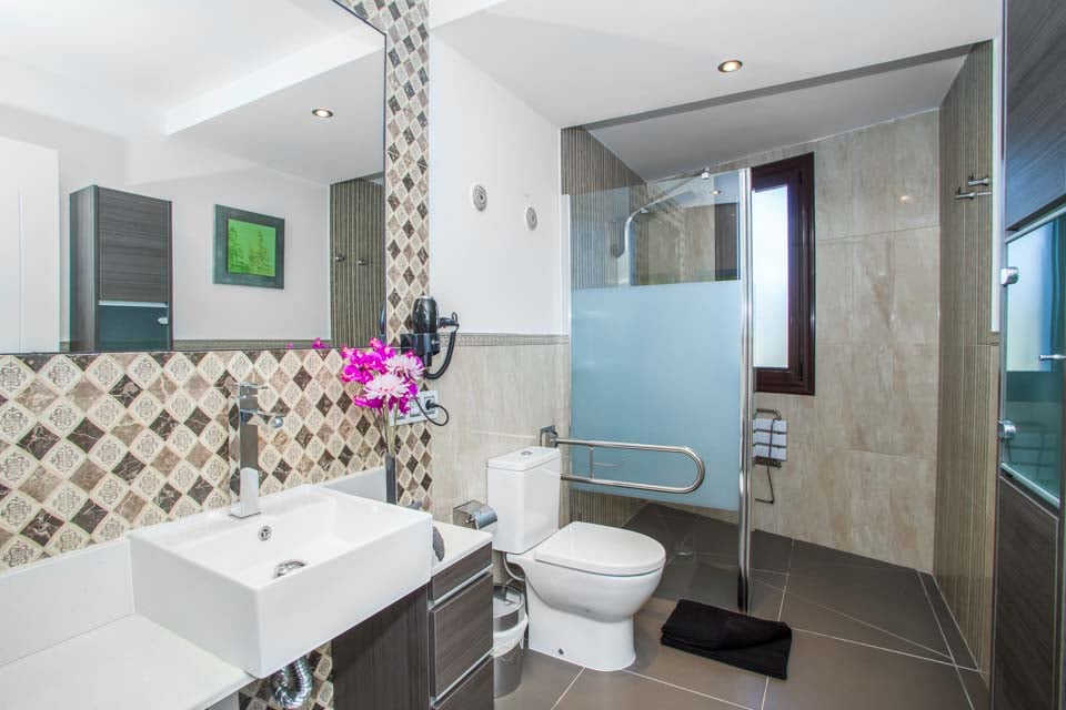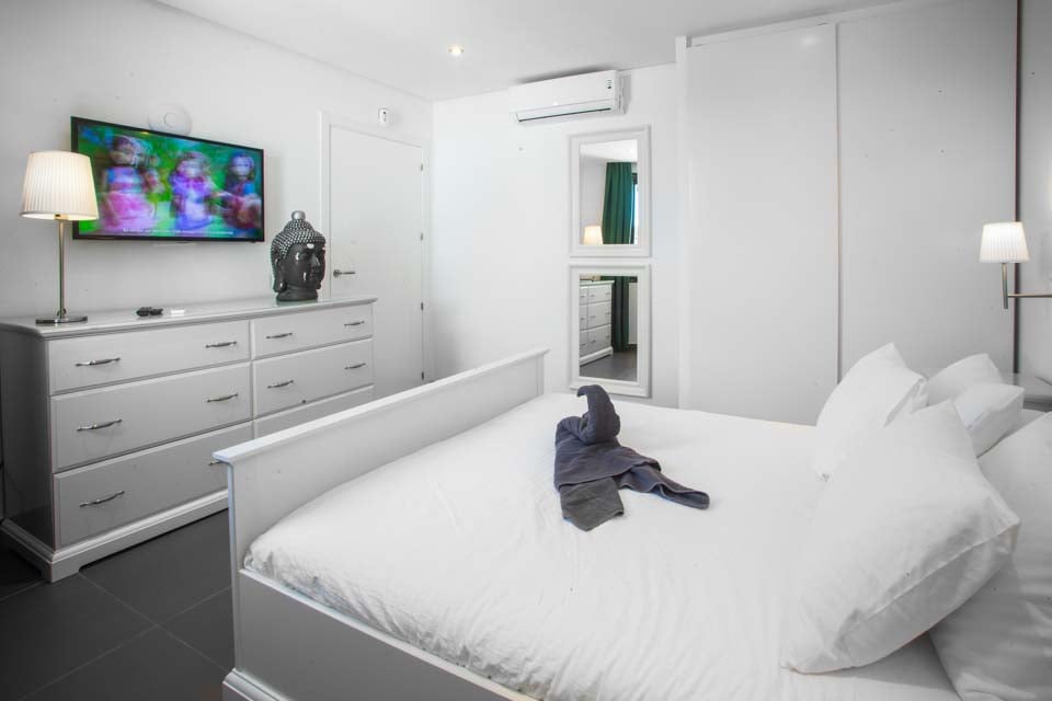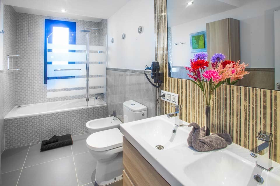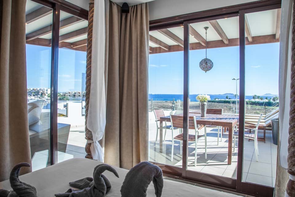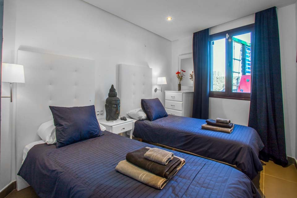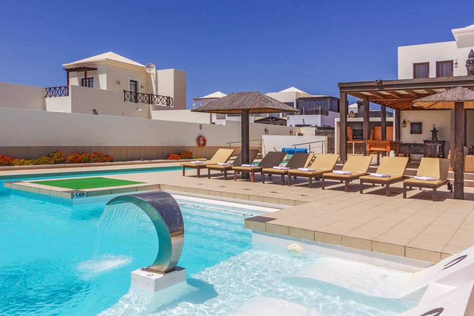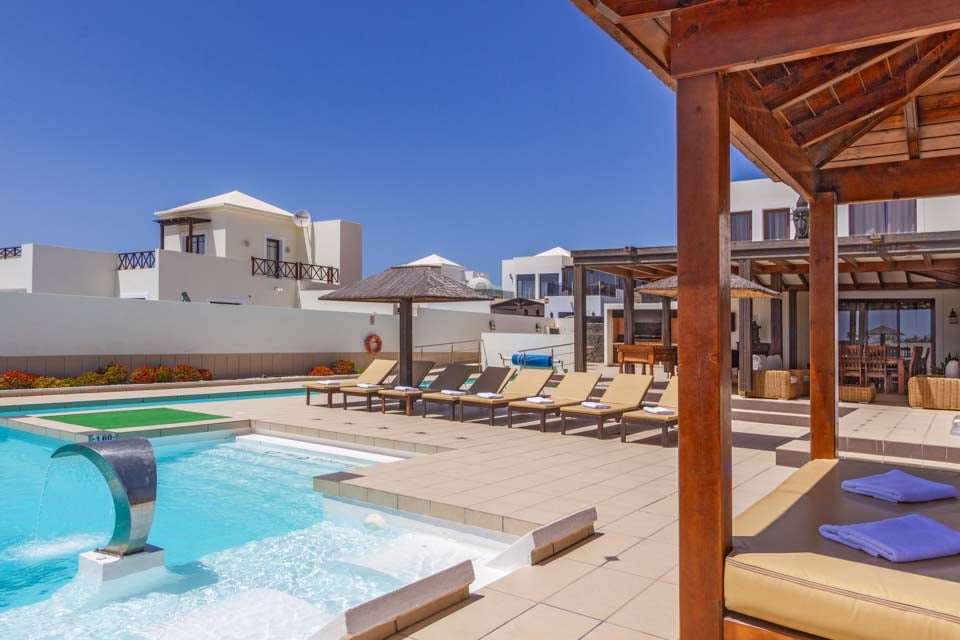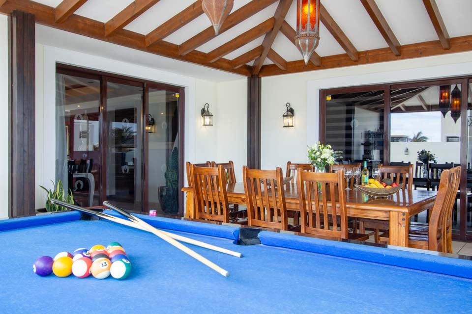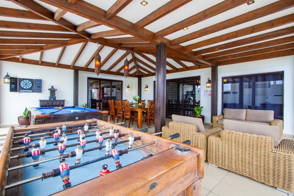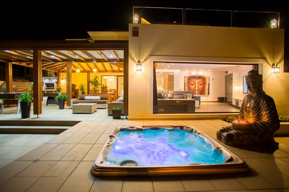Gå udenfor gennem de gulv-til-loft-terrassedøre for at opdage den eftertragtede villas udsøgte midtpunkt – en privat swimmingpool med beroligende vandfald, forsænkede poolsenge og en dedikeret svømmebane. Mens de yngre gæster plasker rundt eller prøver klatrestativet og gyngerne på det sikre legeområde, hvorfor så ikke tage en hurtig træning i fitnesscentret, så I kan nyde en uden skyldfølelse fyldte tallerkener med Papas arrugadas senere? Ved siden af swimmingpoolen lindrer det boblende spabad ved siden af en kæmpe buddha trætte muskler og tilbyder tiltrængt zen-tid, mens den murstensbyggede grill og det udendørs spiseområde problemfrit blander inde- og udeliv. Som en ekstra bonus inkluderer denne villa gratis poolhåndklæder under hele dit ophold.