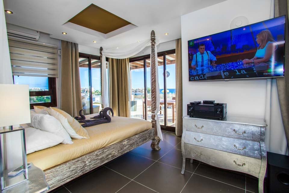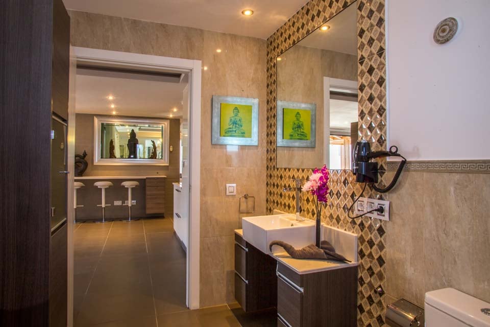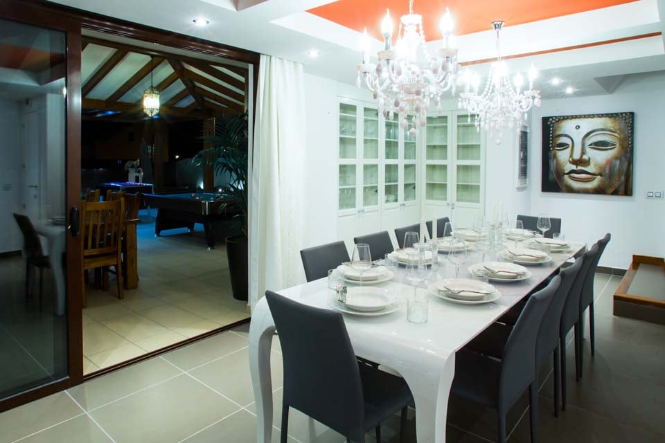 Ideel til familieferier med flere generationer og vennegrupper. Der er seks soveværelser, inklusive det fantastiske soveværelse med himmelseng, stor privat balkon og eget badeværelse, samt to lyse og legende børneværelser. Den rolige villa har yderligere tre badeværelser, en åben stue og et fuldt udstyret køkken samt to primære spiseområder – den elegante spisestue med dekadente lysekroner og den åbne havestue med synlige bjælker, der er velegnet til mere afslappede sammenkomster, hvor der kan spilles pool eller bordtennis mellem banerne.