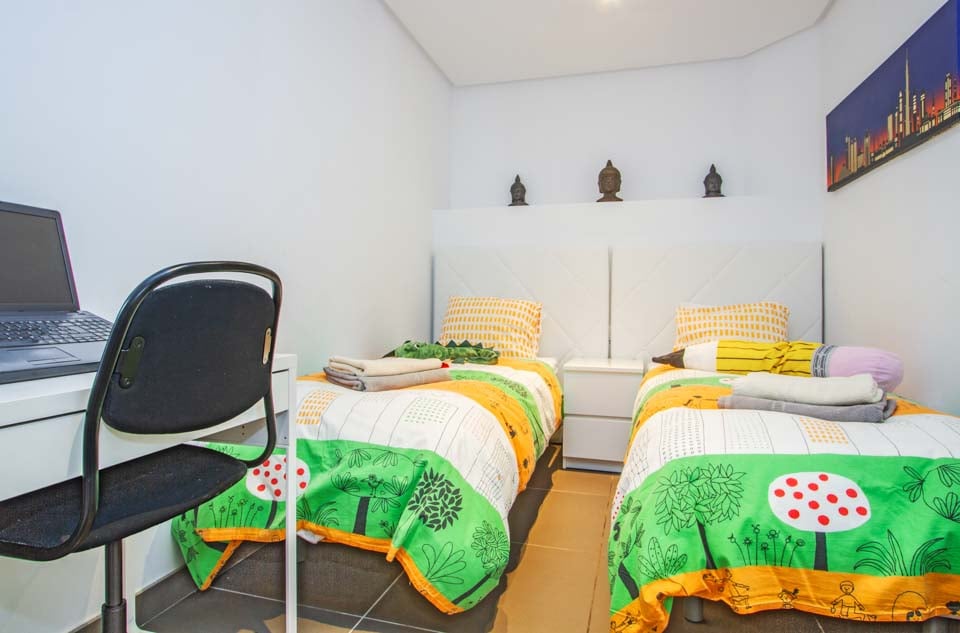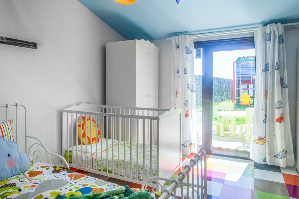 Bemærk venligst, at sengene i soveværelse tre kun er egnede til et barn på 8 år og derunder. Se billederne. Bemærk venligst, at adgang til soveværelse tre kræver intern adgang gennem soveværelse to.