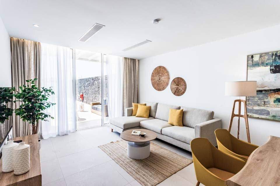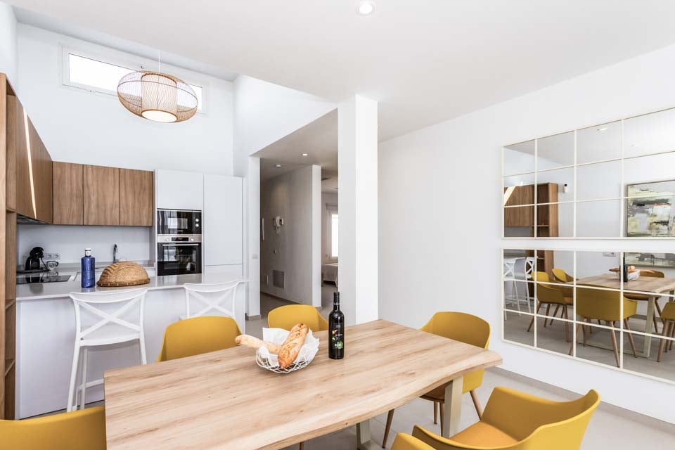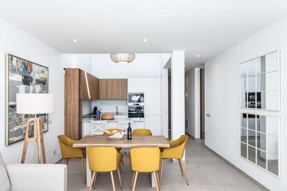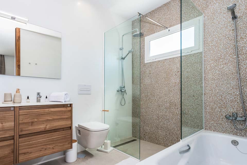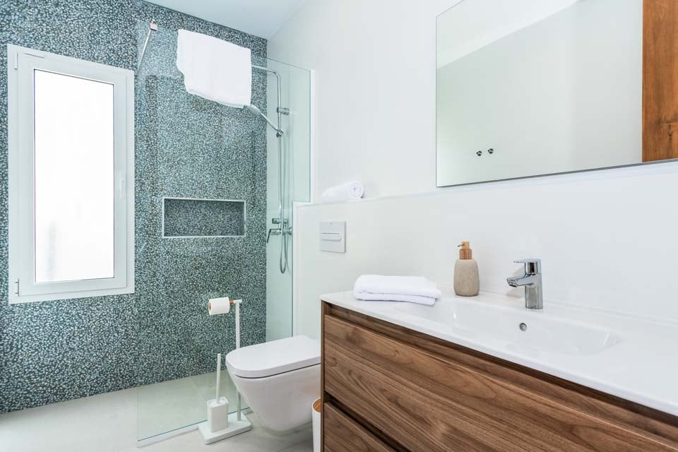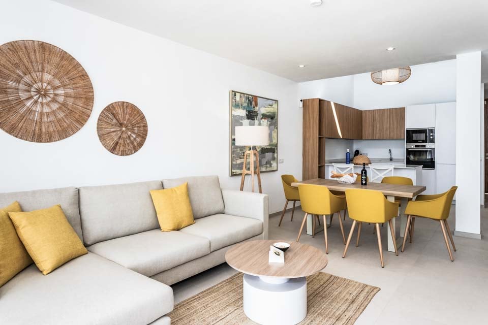 Indvendigt har denne ejendom i stueetagen tre moderne soveværelser, alle med integreret aircondition til de varme sommernætter. En åben stue og køkken tilbyder alt det nødvendige til en ferie med selvhusholdning, herunder opvaskemaskine, mikrobølgeovn, kogeplader og et smart-tv.