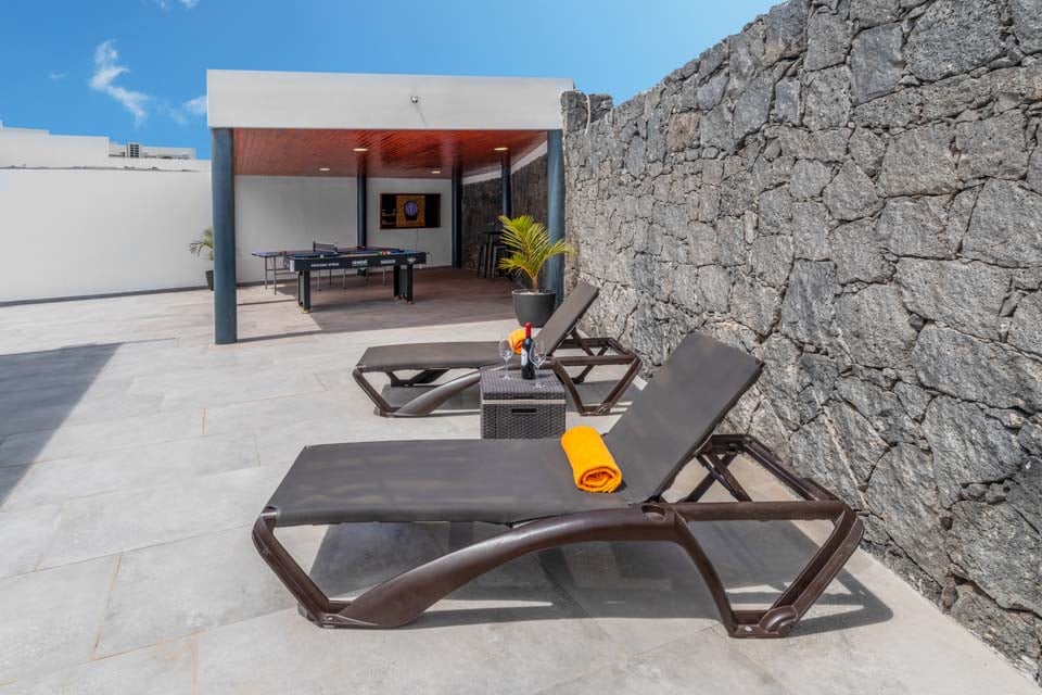 Sig hola til Villa Eto! Denne smukke ejendom kalder på dig til din solrige ferie. Du vil uden tvivl tilbringe det meste af dine dage med at blive underholdt ved poolen. Du finder din egen opvarmede* pool, murstensgrill og spilleområde bag ejendommen. Nyd endeløse timer med at spille pool, dart eller et par runder bordtennis. Alternativt, for dem der ønsker at holde sig i form under ferien, finder I jeres helt eget fitnesscenter på terrassen, hvorefter I kan slappe af med et glas velfortjent boblebad i spabadet.