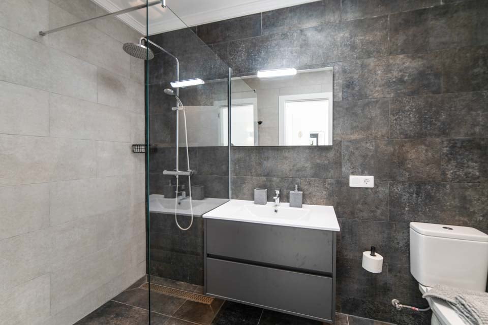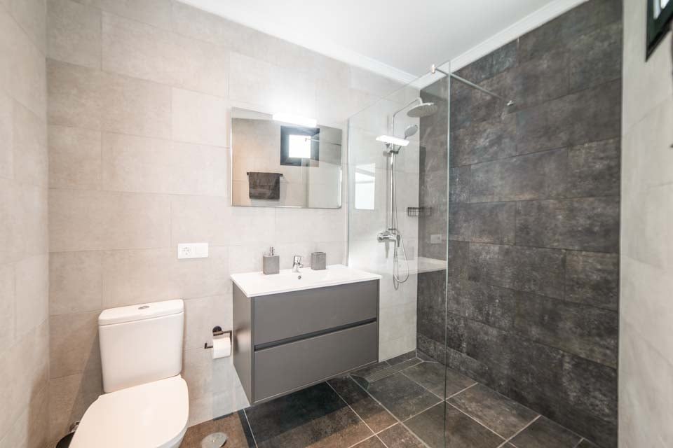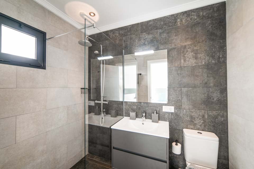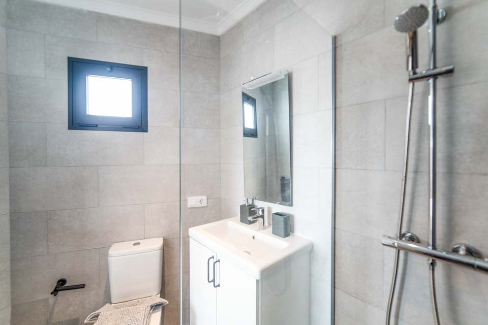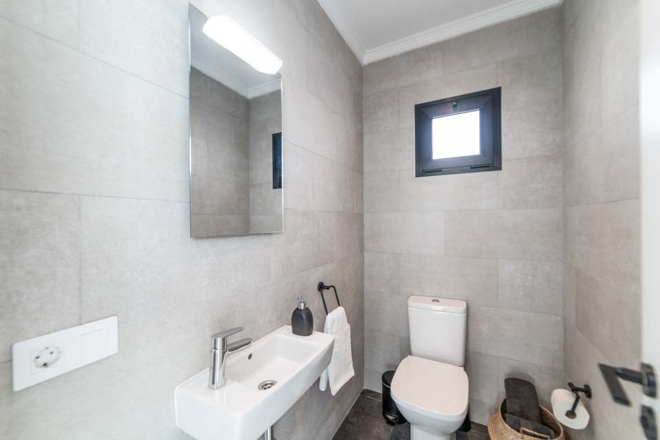 For at komme til villaen er der en 110 cm bred sti sammen med 7 trin. Hoveddøren har en bredde på 90 cm, mens døren til terrassen også er 90 cm bred. Stien til poolen er 110 cm bred. Terrassen er i ét plan, åben og flisebelagt. Der er en let kant over terrassedørkarmene. Selve poolen har trinadgang. Alle soveværelser har en dørbredde på 70 cm, mens alle badeværelser har en dørbredde på 70 cm. Døren ind til køkken/alrum er 120 cm bred, og døren ind til opholdsstuen er 130 cm bred. Der er et fitnesscenter og et loungeområde i stueetagen, som nås via 15 interne trin. *Bemærk venligst, at selvom vi har gjort alt for at sikre, at de givne oplysninger er nøjagtige, kan der forekomme fejl, og hvis du har brug for mere specifik information om villaen, er du velkommen til at kontakte os.