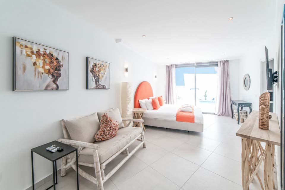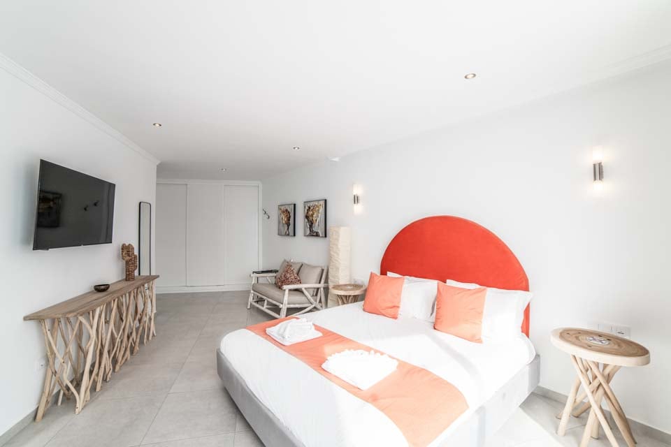 Kingsize-seng, super kingsize-seng, smart-tv, aircondition, døre til terrasse