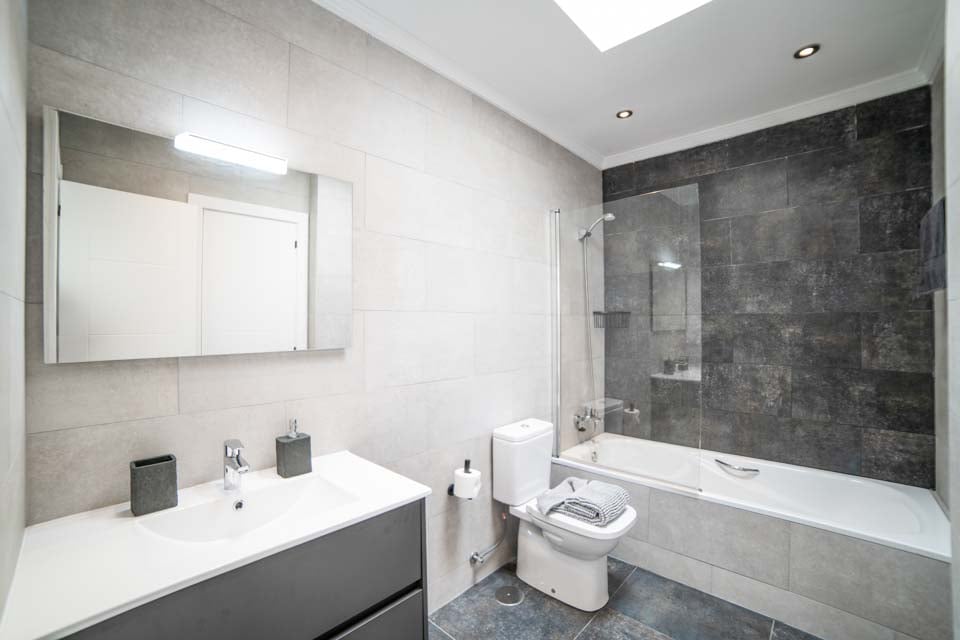 Forbindelsesdøre, Badekar med bruser, Toilet, Håndvask