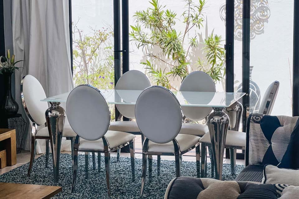 Denne villa er moderne både indvendigt og udvendigt og er indrettet til en høj standard med farvestrejf, moderne indretning og kvalitetssengelinned. Køkkenet er komplet med alt, hvad du behøver for at lave mad, samt en vaskemaskine til din ferie med selvhusholdning.