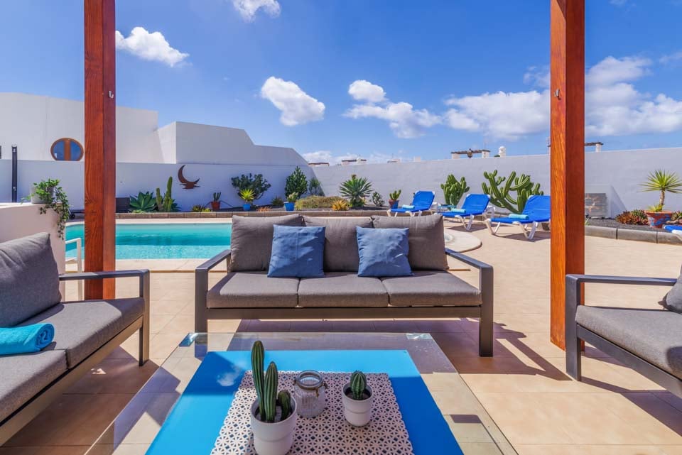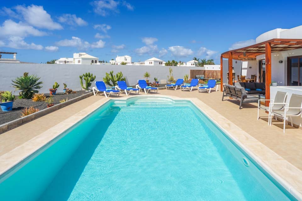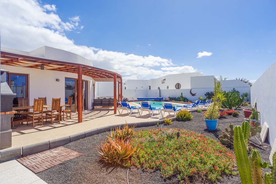 Villa Luar ligger 25 minutters gang fra hjertet af Playa Blanca. En smuk ejendom med fem soveværelser, perfekt til op til ti gæster. Selvom du ikke er langt fra resortets centrum, kan Villa Luar friste dig til at blive ved poolen og nyde din egen private terrasse med opvarmet* pool. Terrassen har liggestole og hyggelige rattanmøbler til din morgenkaffe og eftermiddagscocktails ved poolen. Til tapas-frokoster og udendørs fester har villaen også en murstensgrill og et pergola-område, som alle kan nyde.