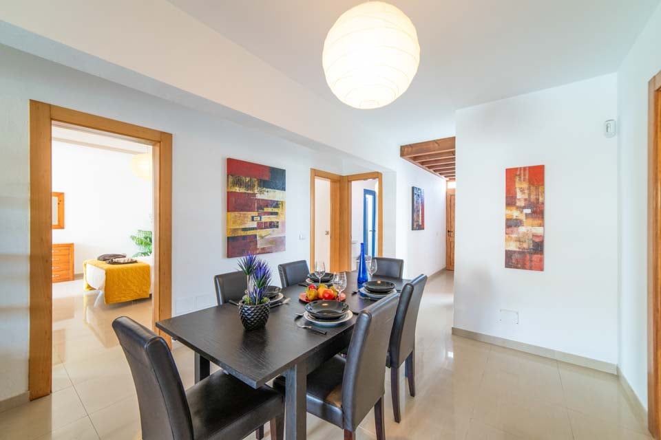 Selve villaen er hjemlig og minimalistisk, samtidig med at den sprængfyldt er med sollys og dekoreret med lyse hvide vægge. Du finder fire rummelige soveværelser, hvoraf det ene har et eget handicapvenligt brusebadeværelse. Alle soveværelser har ventilatorer, der holder dig kølig på de varme sommeraftener.
