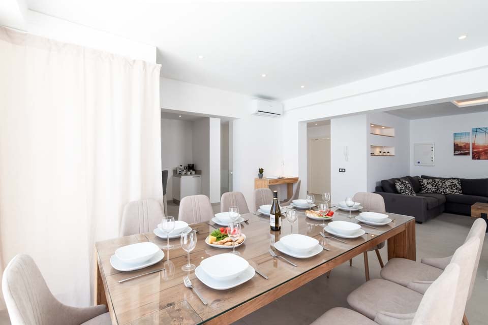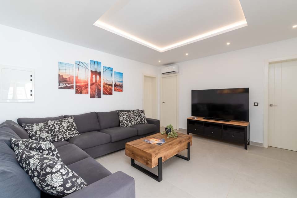 Komfortabelt siddeområde, Smart-tv, aircondition, spiseplads, døre til terrasse