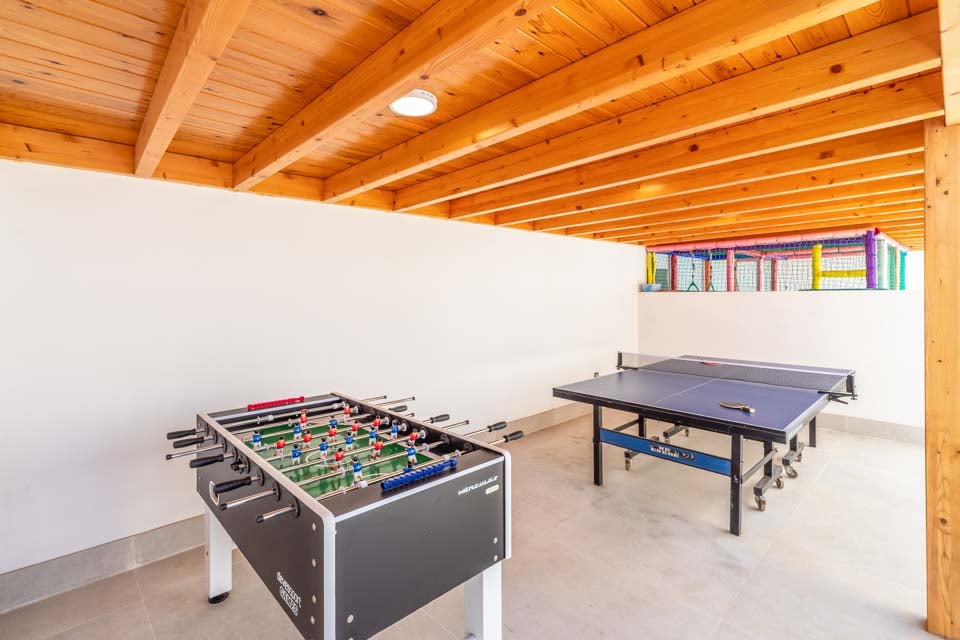 Træd udenfor til din private oase med opvarmet* pool (poolhåndklæder medfølger), et boblende spabad og en rolig sauna – ideel til afslapning efter en dag med udforskning af Lanzarote. For de aktive og unge af sind kan man nyde stedets fitnesscenter, fodboldbord, poolbord, bordtennis og spillekonsol. Et dedikeret legeområde med bløde legeredskaber holder yngre børn underholdt og giver forældrene et øjeblik til at slappe af.