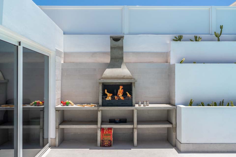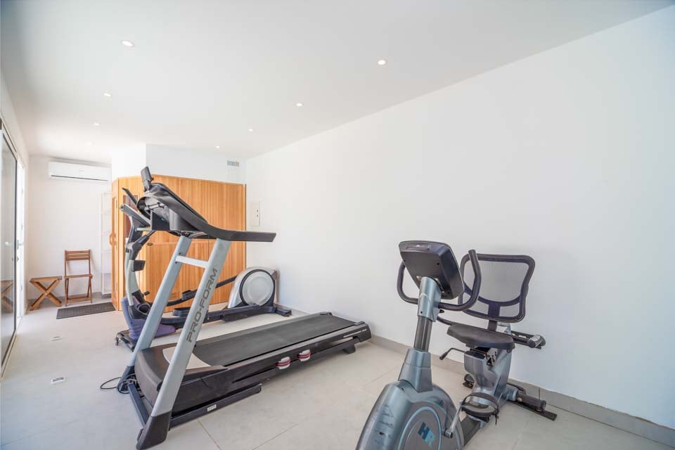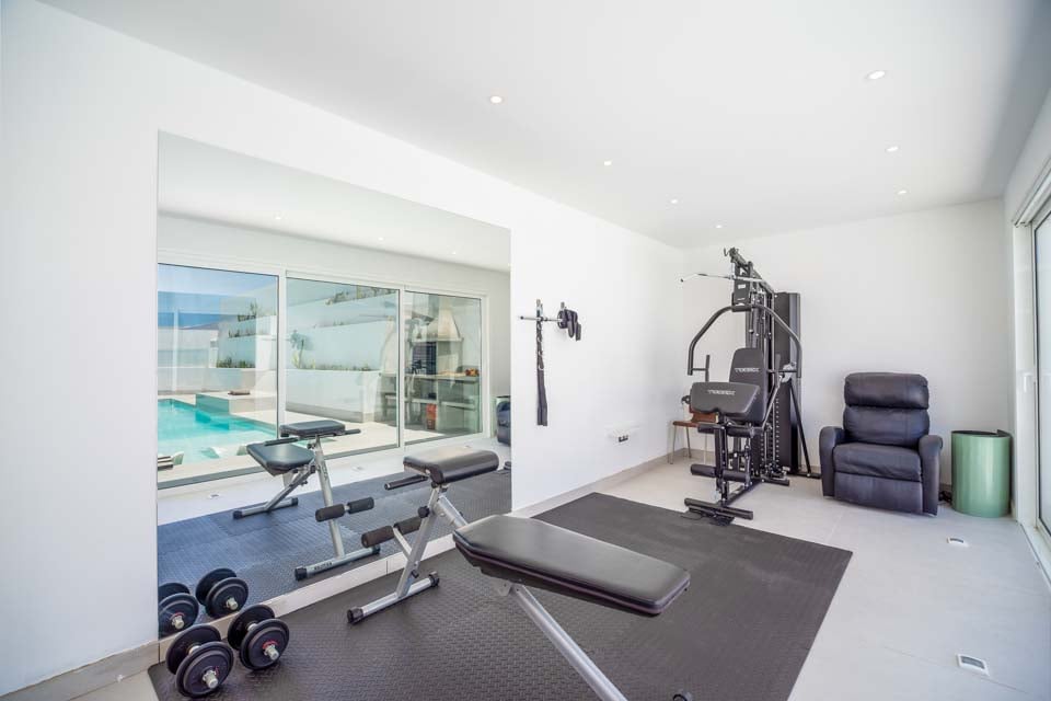 Villaen har fem rummelige soveværelser, herunder en moderne master suite med et åbent badeværelse, der glider problemfrit ind i rummet og tilføjer en følelse af rummelighed og afslapning. Der er aircondition i hele ejendommen, hvilket sikrer komfort uanset årstiden.