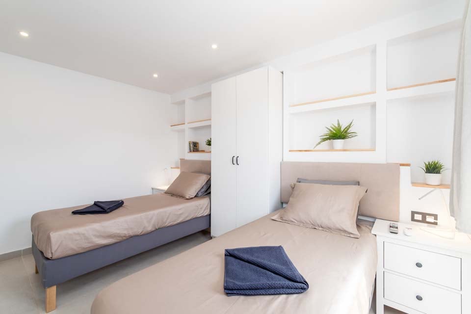 Bemærk venligst, at denne villa har en fælles indkørsel, mens ejendommen har private pladser til to biler. Bemærk venligst, at soveværelse 3 har en super kingsize-seng, der kan laves om til to enkeltsenge. Dette skal anmodes om inden ankomst. Den lave del af poolen måler 3x6 m og er 40 cm dyb.