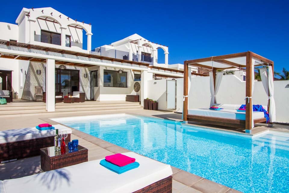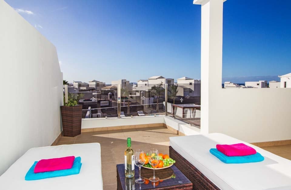 Villa Pedro er en smuk villa af høj kvalitet beliggende vest for Playa Blanca i den eksklusive urbanisering Las Maretas. Denne moderne og veludstyrede ejendom med tre soveværelser og to badeværelser tilbyder masser af faciliteter for at give vores kunder den perfekte villaoplevelse. Stueetagen er fordelt på to etager og består af en moderne lounge med udsigt over poolområdet, komplet med flere britiske kanaler, spillekonsol og spiseplads til seks personer. Gennem gangen kommer man til det moderne, fuldt udstyret køkken med opvaskemaskine. I stueetagen er der også et soveværelse med to enkeltsenge og et familieværelse med bruser. Ovenpå er der yderligere et soveværelse med to enkeltsenge, et soveværelse og et separat familiebadeværelse. Begge soveværelser ovenpå har adgang til terrassen, der tilbyder en fantastisk havudsigt til øerne Los Lobos og Fuerteventura. Det udendørs opholdsrum er fantastisk. Midt på grunden er der din egen fritformede swimmingpool (opvarmning inkluderet mellem november og april) med trinvis adgang. En dagseng er placeret i nærheden af swimmingpoolen for dem, der ønsker at slappe af væk fra den kanariske solskin. En murstensgrill og vask er til rådighed, så vores gæster kan spise under åben himmel, når det passer dem. En stor pergola er knyttet til villaen, der giver gæsterne masser af skygge, komplet med komfortable rattansæder og yderligere spisefaciliteter. Derudover er der bordtennis og billard til vores gæsters fornøjelse.