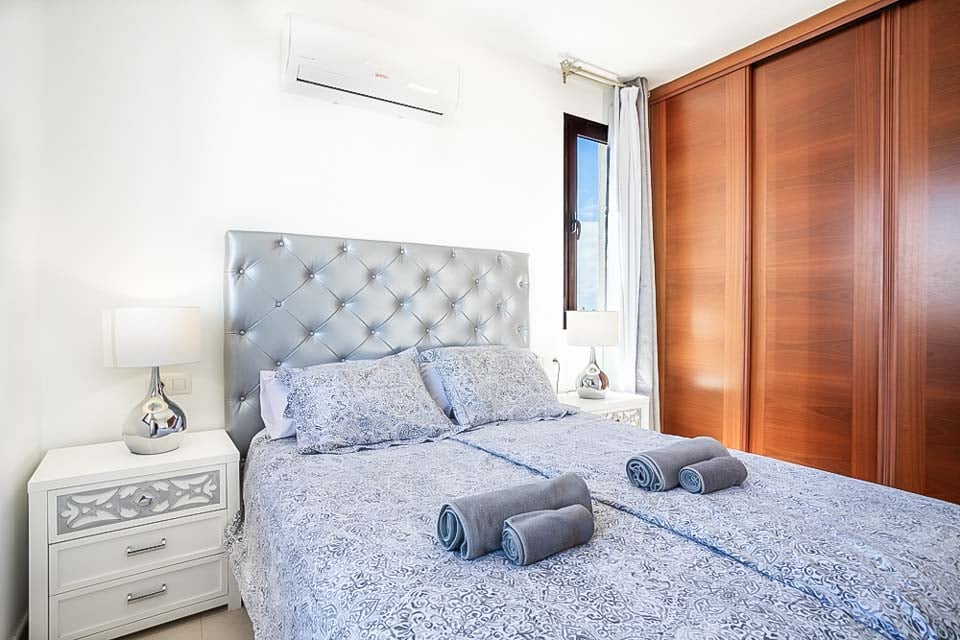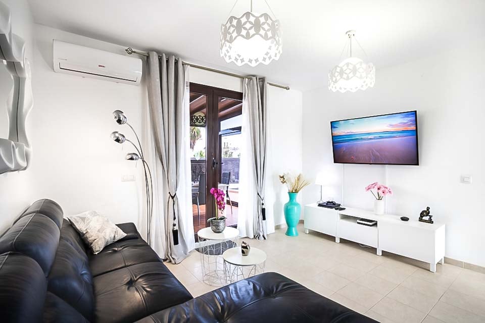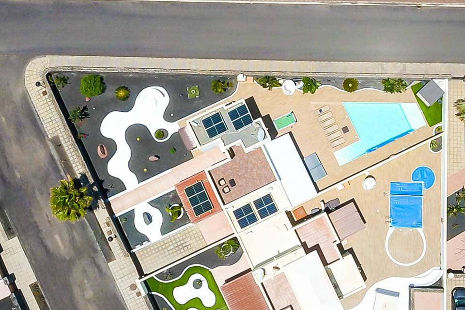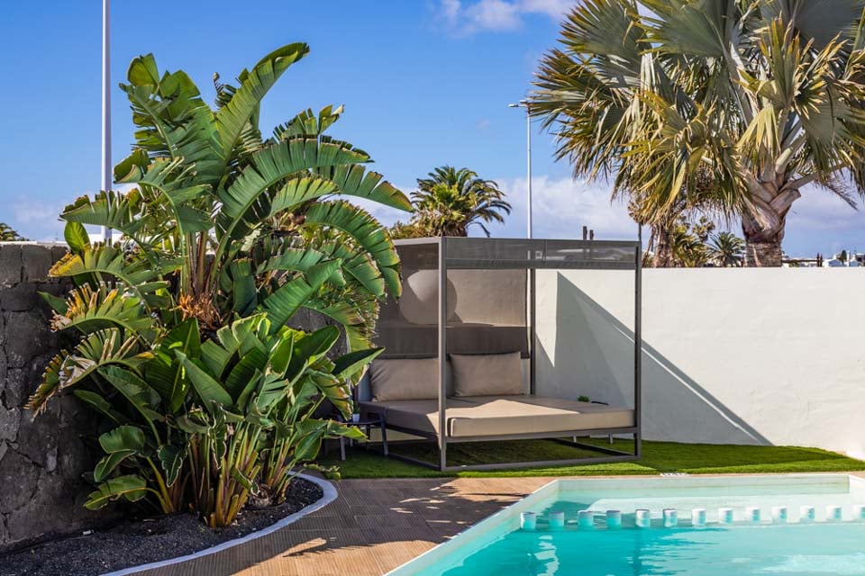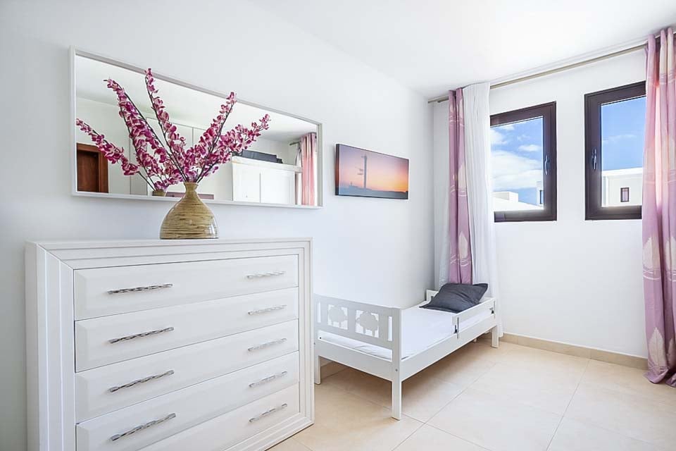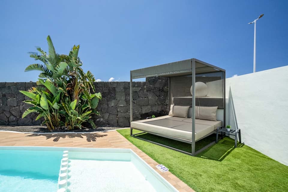 Villa Perla er en lys, moderne villa med omhyggeligt placeret moderne møbler af ejeren, der tilbyder Solmars gæster den ideelle villaferieoplevelse. Stueetagen er fordelt på to etager og består af en åben stue med spiseplads og et moderne, fuldt udstyret køkken, et soveværelse med to enkeltsenge og et soveværelse med dobbeltseng, der begge deler et familiebadeværelse. Ovenpå finder du endnu et soveværelse med dobbeltseng, eget badeværelse og en privat terrasse med udsigt over naboøen Fuerteventura. Alle soveværelser har aircondition for din komfort, og der er WiFi tilgængeligt i hele villaen.