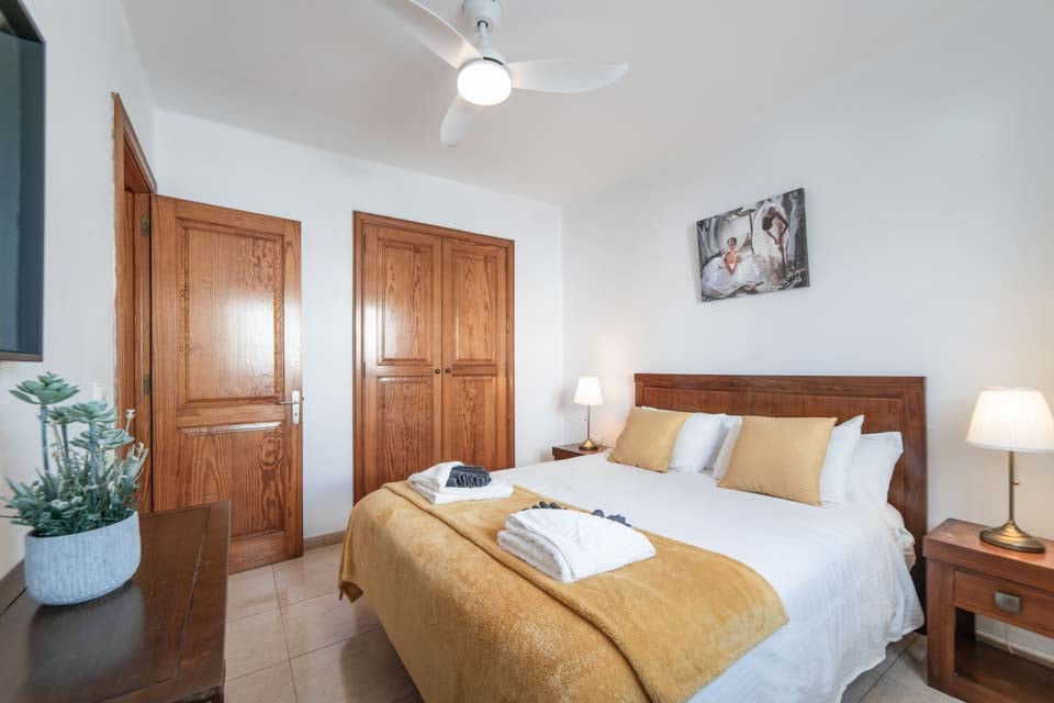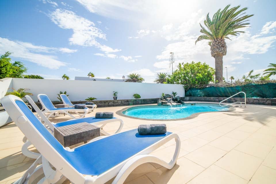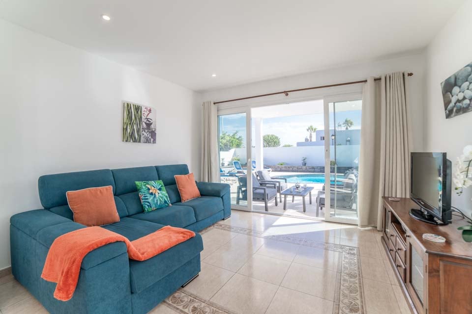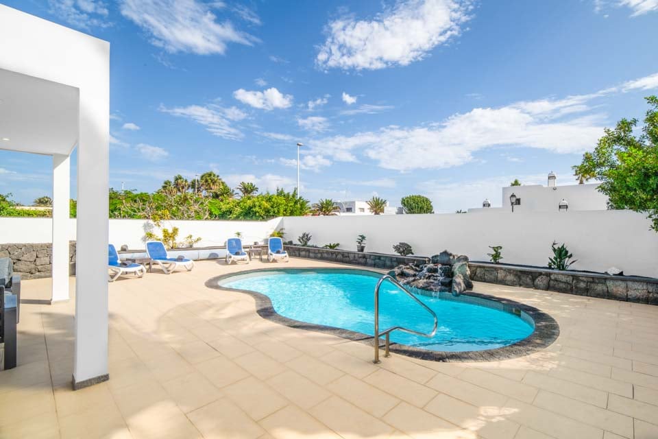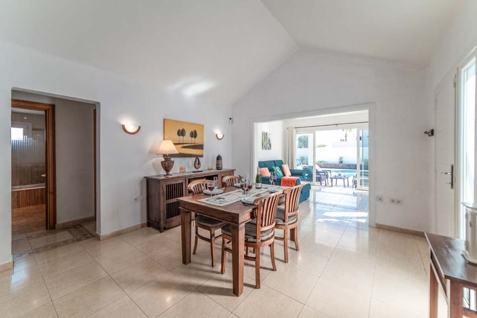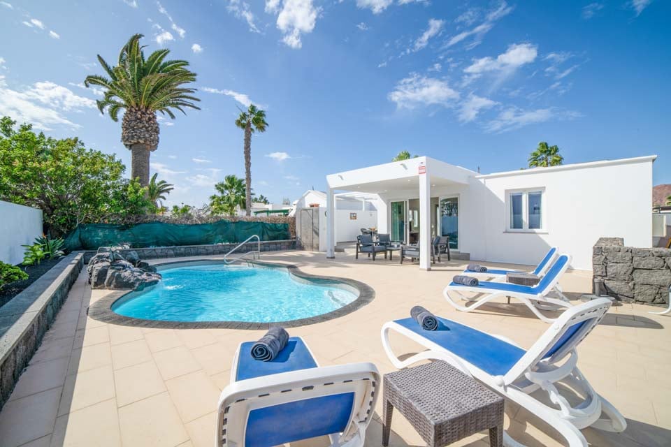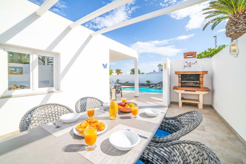 Villaen har tre rummelige soveværelser, hvoraf to er udstyret med loftsventilatorer for ekstra komfort. Det åbne opholdsområde fører til et smukt udendørs område med en indbydende, privat opvarmet pool - tilgængelig året rundt, med opvarmning* efter anmodning. Til udendørs spisning er der et dejligt område med en murstensgrill, ideelt til at nyde det solrige klima på Lanzarote.