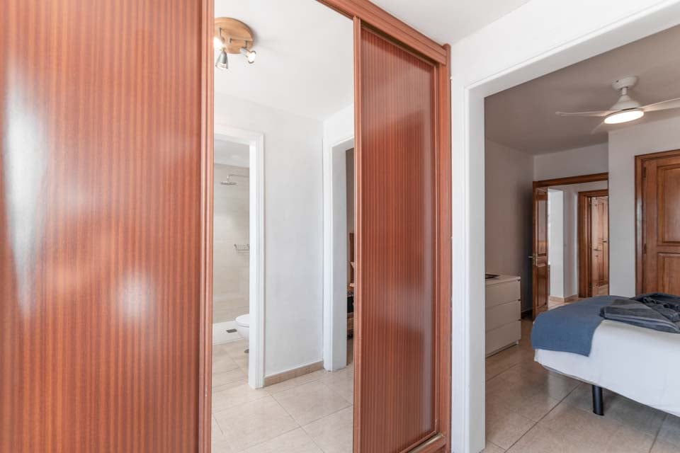 For at komme til villaen er der en sti, der er 90 cm bred. Hoveddøren har en bredde på 87 cm, mens døren til terrassen er 88 cm bred. Terrassen er åben, flad og flisebelagt med 1 trin ned til poolkanten. Selve poolen har trinadgang med et gelænder til støtte. Dette er en ejendom i stueetagen. Der er et lille trin op i huset via hoveddøren. Alle soveværelser har en dørbredde på 72 cm, mens alle badeværelser har en dørbredde på 67 cm. Døren ind til køkken/alrum er 132 cm bred, og døren ind til opholdsstuen er også 87 cm bred. *Bemærk venligst, at selvom vi har gjort alt for at sikre, at de givne oplysninger er nøjagtige, kan der forekomme fejl, og hvis du har brug for mere specifik information om villaen, er du velkommen til at kontakte os.