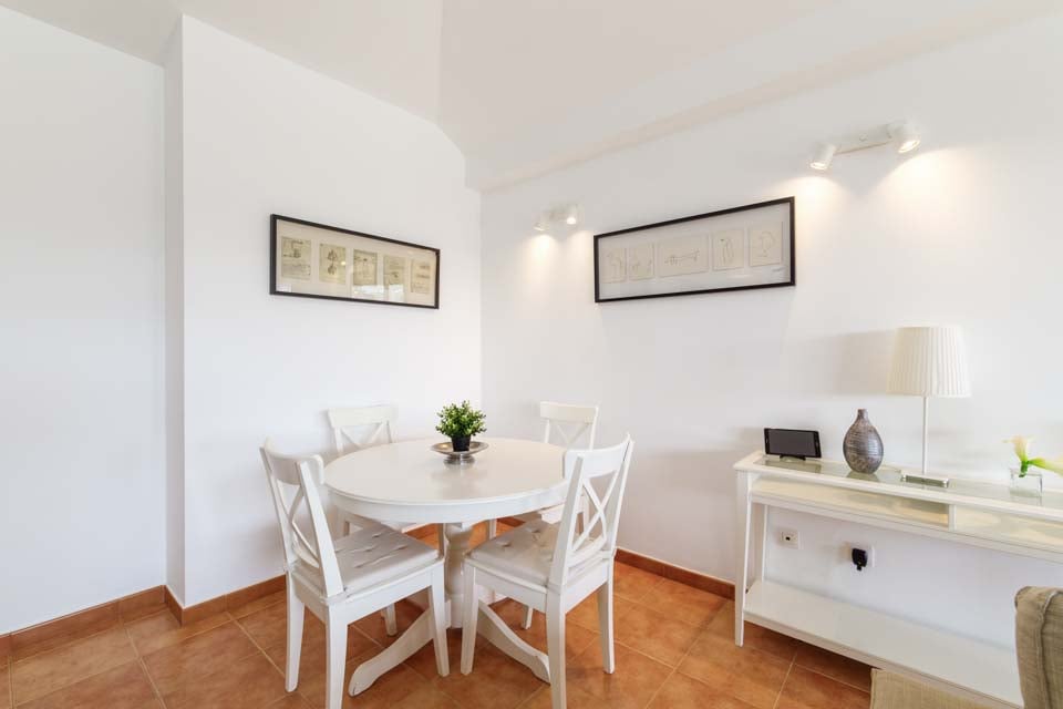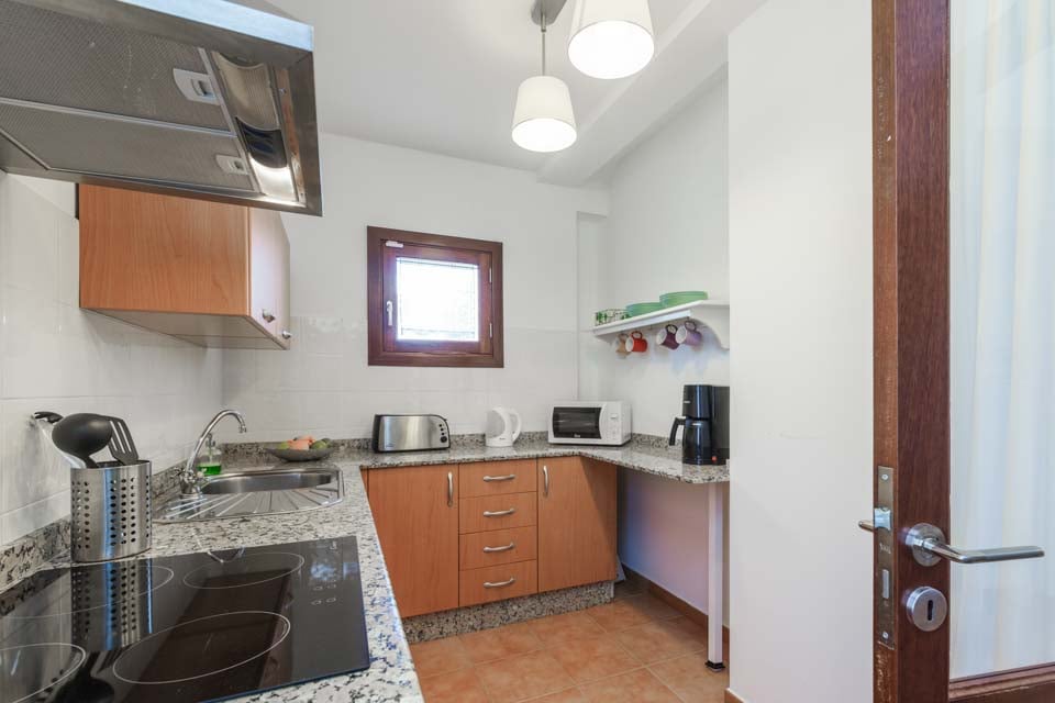 Indvendigt er villaen moderne, lys og luftig med farvestrejf overalt. Du finder også et fuldt udstyret køkken og vaskemaskine for ekstra bekvemmelighed.
