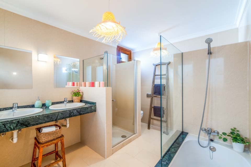 Badekar med bruser, Dobbelt håndvask, Bruser, Toilet