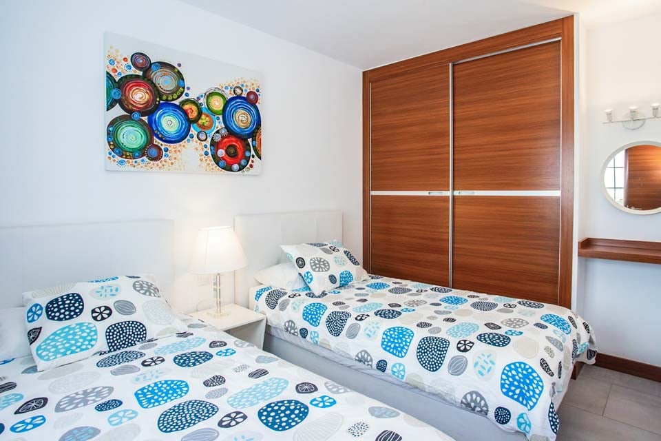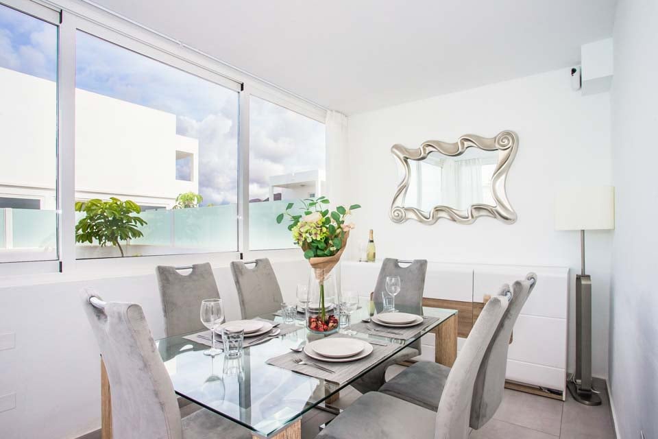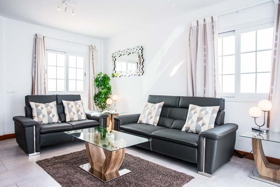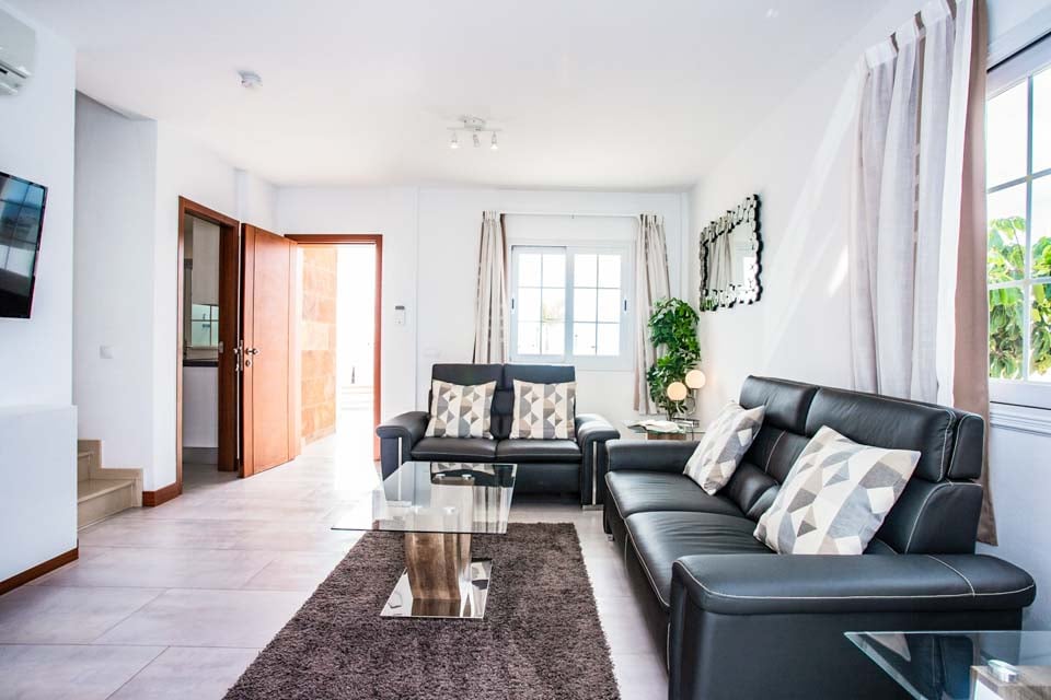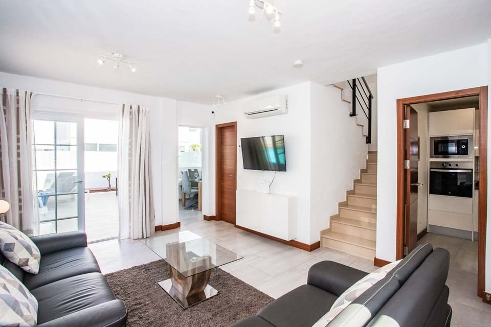Denne smukke, moderne og hyggelige villa med to soveværelser er ideel til op til fire gæster. Denne villa er rummelig både ovenpå og nedenunder og har alt, hvad du kan forvente af en ferie med selvhusholdning i solen. Stueetagen tilbyder et fuldt udstyret køkken, bryggers, stue og spisestue til dine indendørs måltider. Ovenpå finder vi to hyggelige soveværelser, begge med et lille tv og kølig aircondition til de varme sommeraftener.