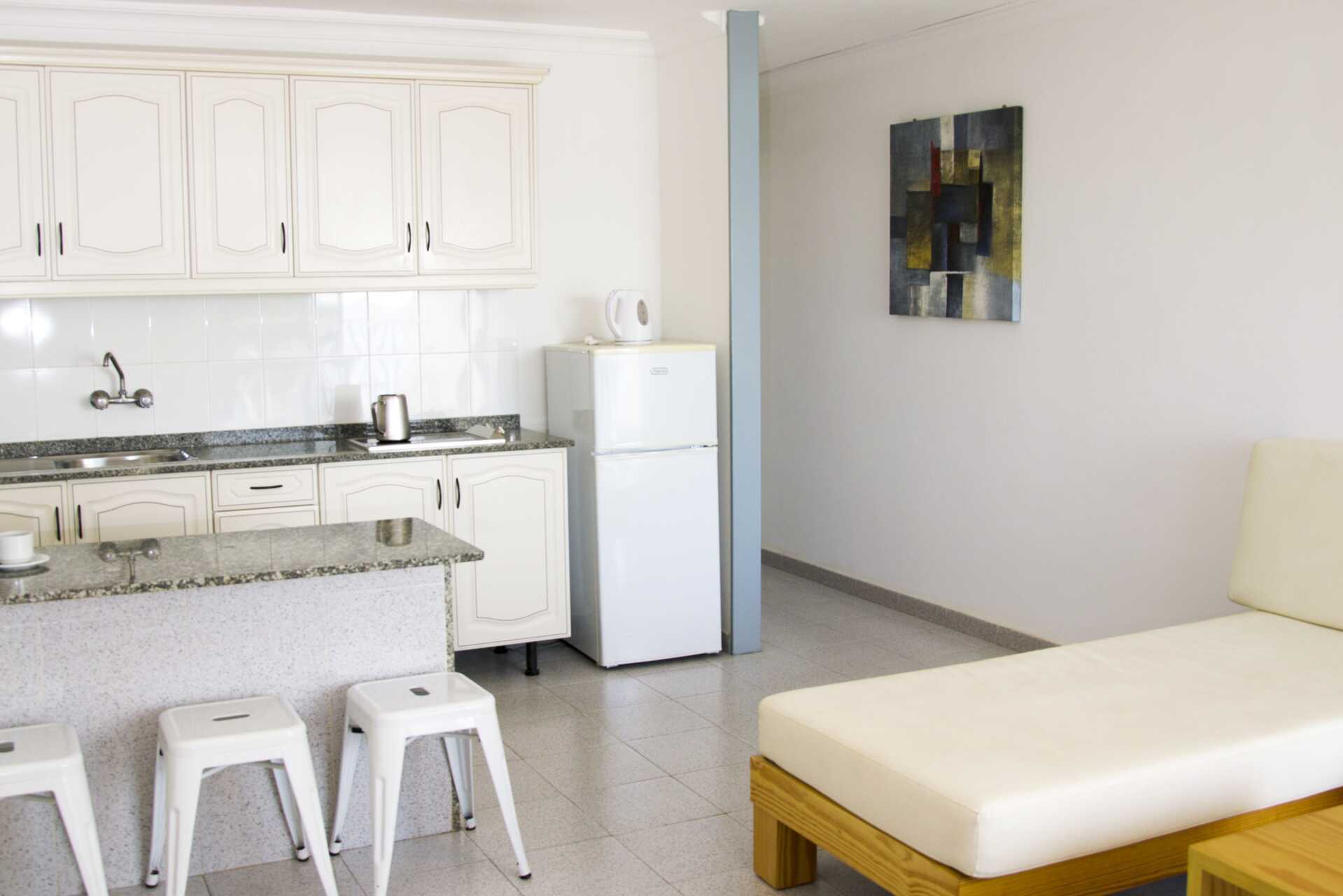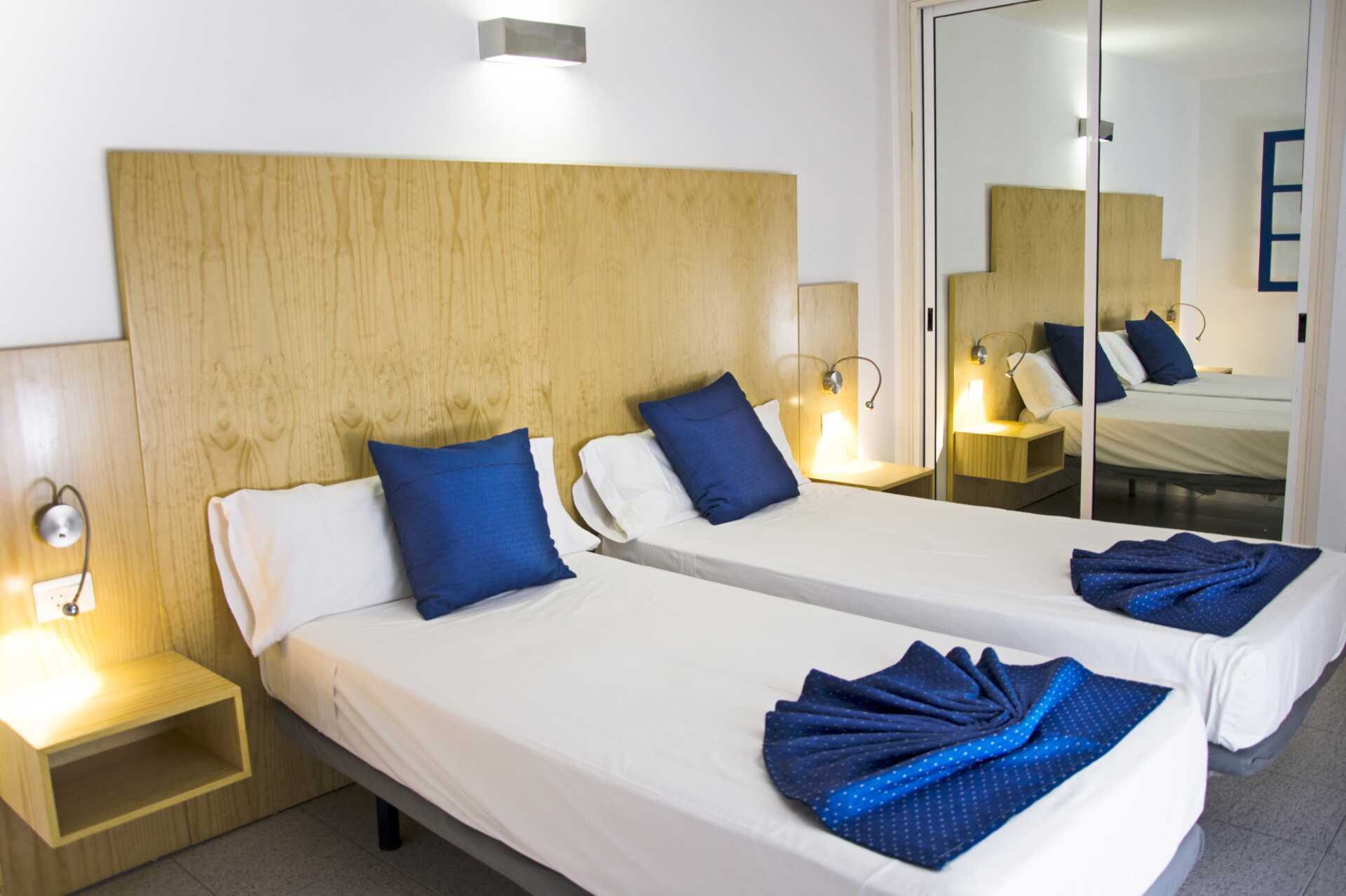 3-værelses lejligheder med balkon. To soveværelser og et kombineret opholdsrum med minikøkken. En dobbeltseng i det ene soveværelse og to enkeltsenge i det andet soveværelse. Mulighed for ekstra opredning i sovesofa. Minikøkken med kogeplader, køleskab og fryser, brødrister, el-kedel, mikroovn, kaffemaskine og enkelt køkkenudstyr. Spiseplads ved bardisken. Gratis wifi og deponering. Tv med internationale kanaler. Hårtørrer. Badeværelse med bruser og toilet. Rengøring 3 gange om ugen.